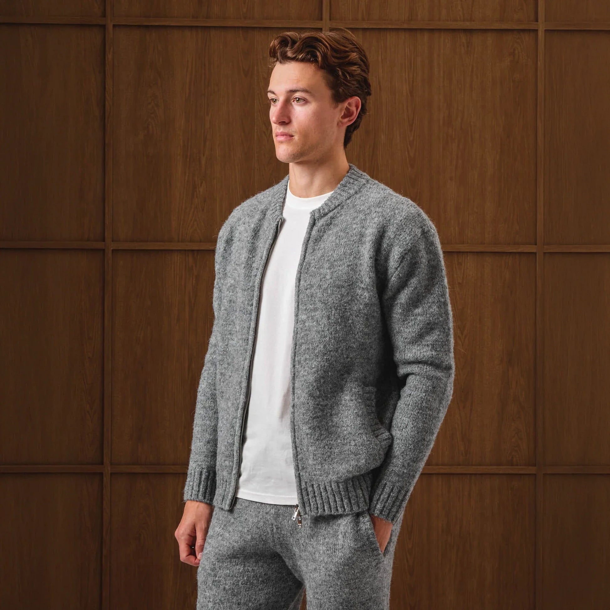 Perfect for chilled days, the Belier Knitted Bomber Grey Jacket brings cosy texture in a heathered soft blend. The soft, fuzzy knit sits relaxed with a ribbed collar, cuffs, and hem. A two-way front zip and handy side pockets keep it easy. Layer over tees or hoodies when the temperature dips, finished with a subtle metal logo tab at the back. Shop yours before they’re gone.
