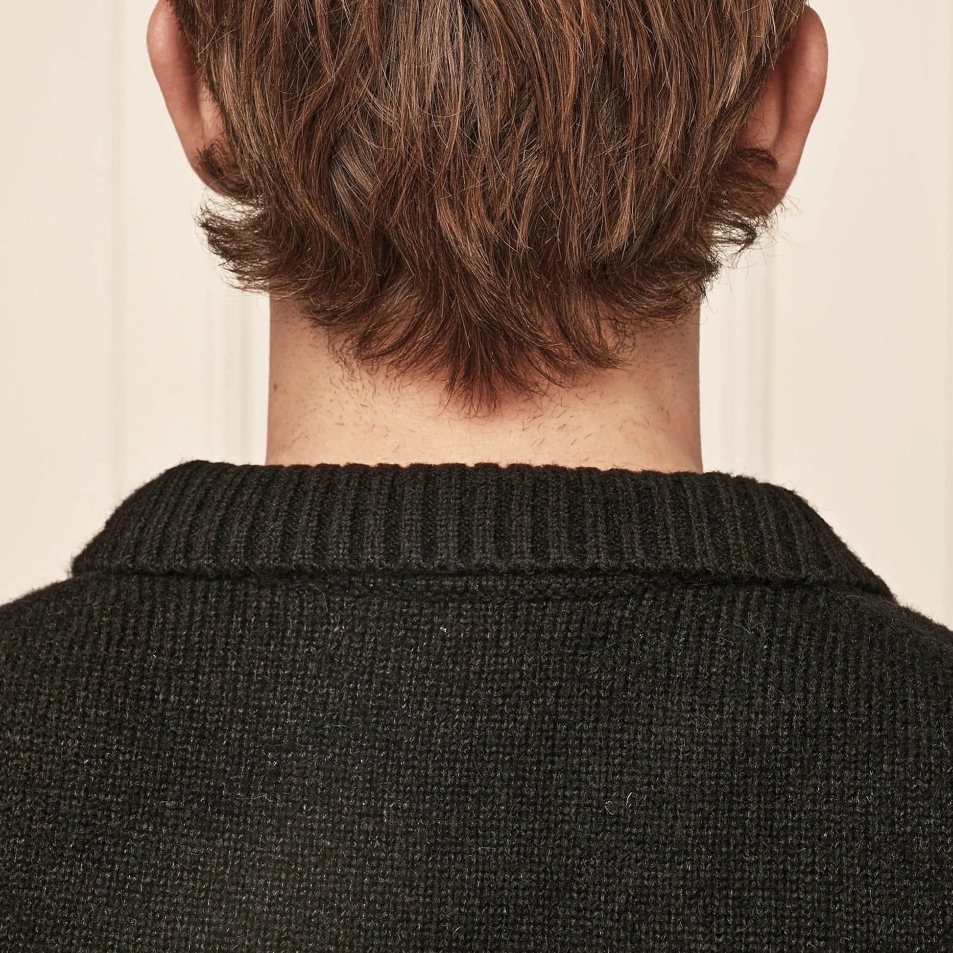 Belier Mohair Knit Open Collar Black Sweatshirt