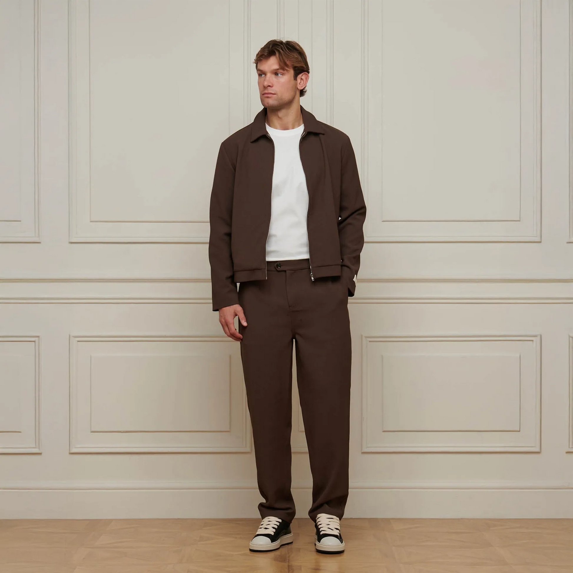 Update your fit rotation with the Belier Smart Textured Zip-Up Jacket in rich brown. Cut with a clean point collar and zip-through front, it sits neatly over tees or shirts. The textured fabric has gentle stretch for comfort, while side adjuster tabs and tonal hardware keep the finish sharp. Pair with matching trousers or denim for easy polish. Don’t miss out, get yours now.