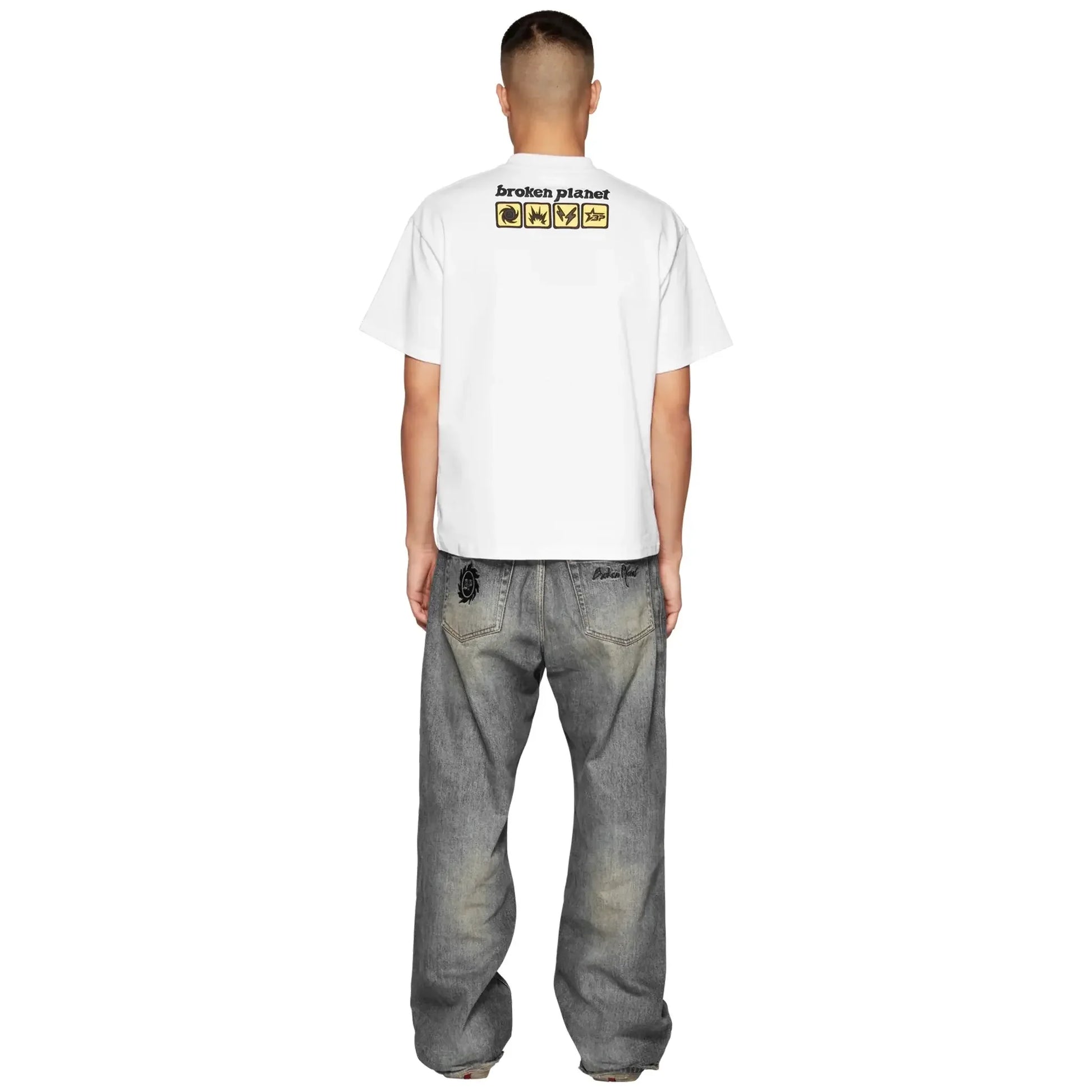 Showcasing Broken Planet’s signature vibrant graphics, this white T-shirt from the label’s latest collection is adorned with an eye-catching “in case of emergency” print. Displaying cartoon-like graphics and Broken Planet branding, the T-shirt is cut from heavy cotton to a relaxed fit and will be ideal for working into a summer outfit.
