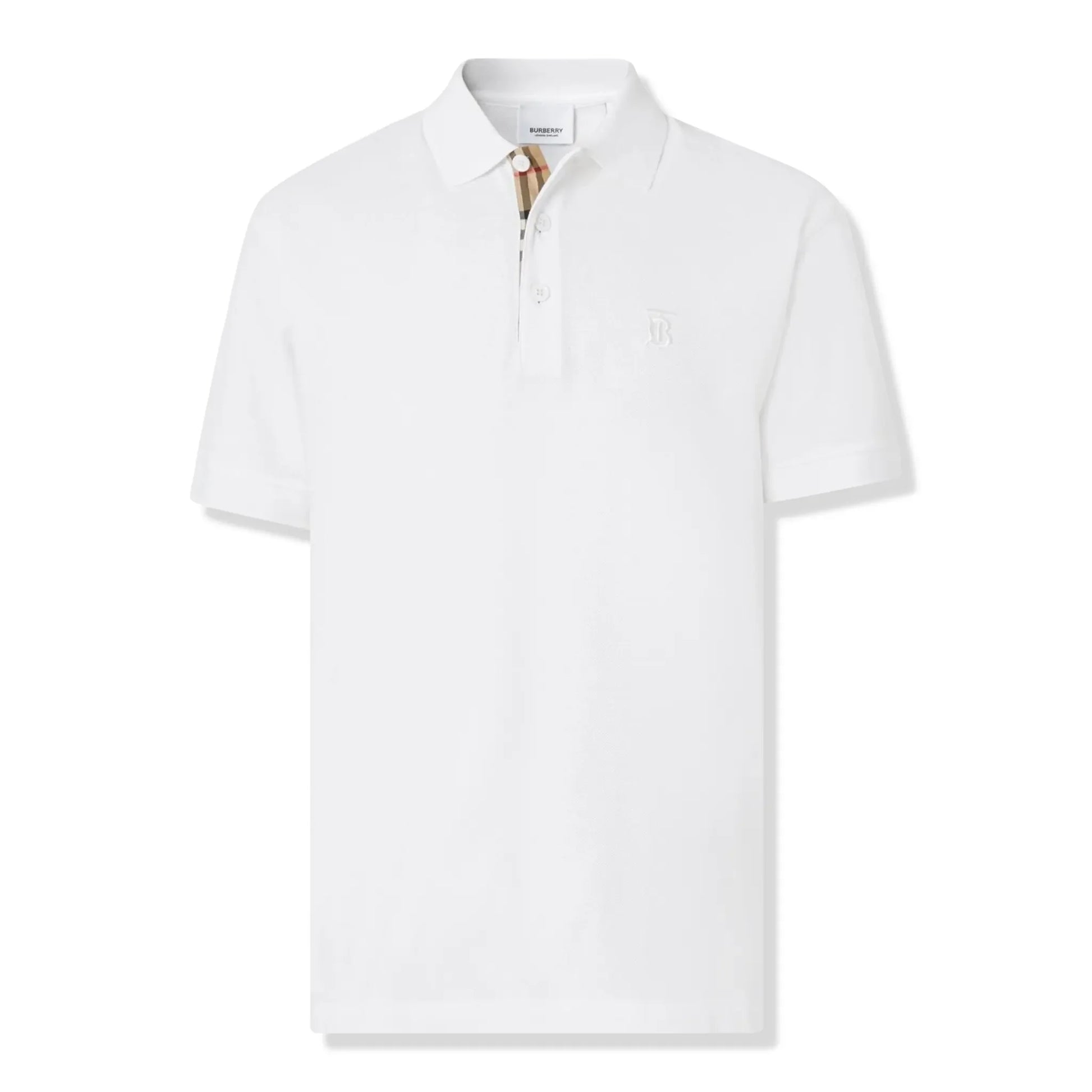 Burberry Eddie Logo Pique Cotton White Polo Shirt