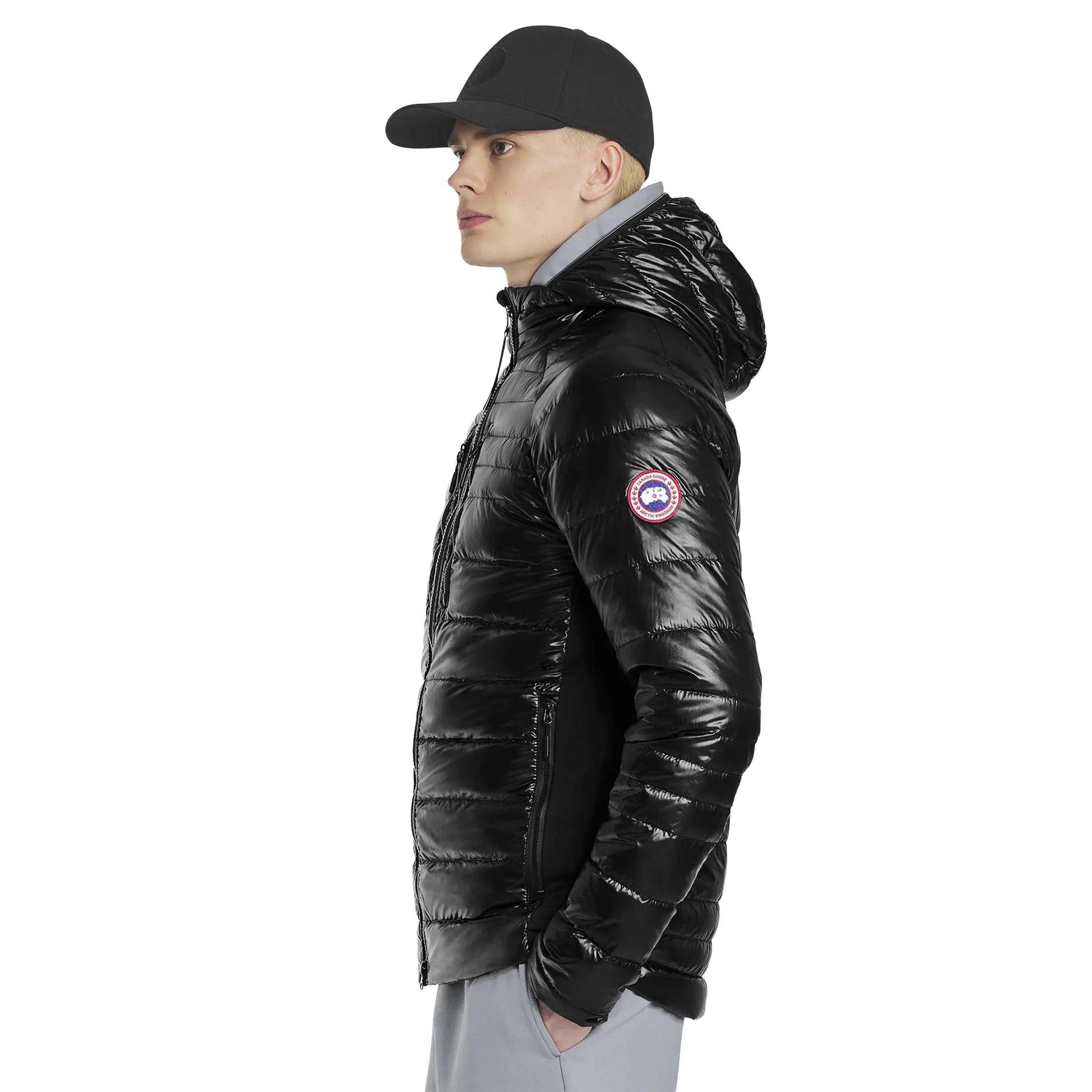 Made for cold city moves, Canada Goose’s HyBridge Lite jacket delivers warmth without bulk. Glossy quilted shell packs lightweight down, while soft stretch side panels boost mobility and breathability. A snug hood, two-way zip and zip pockets keep things practical. Finished with the Arctic Program patch on the sleeve, it layers clean and easily over tees or knits. Grab yours today.