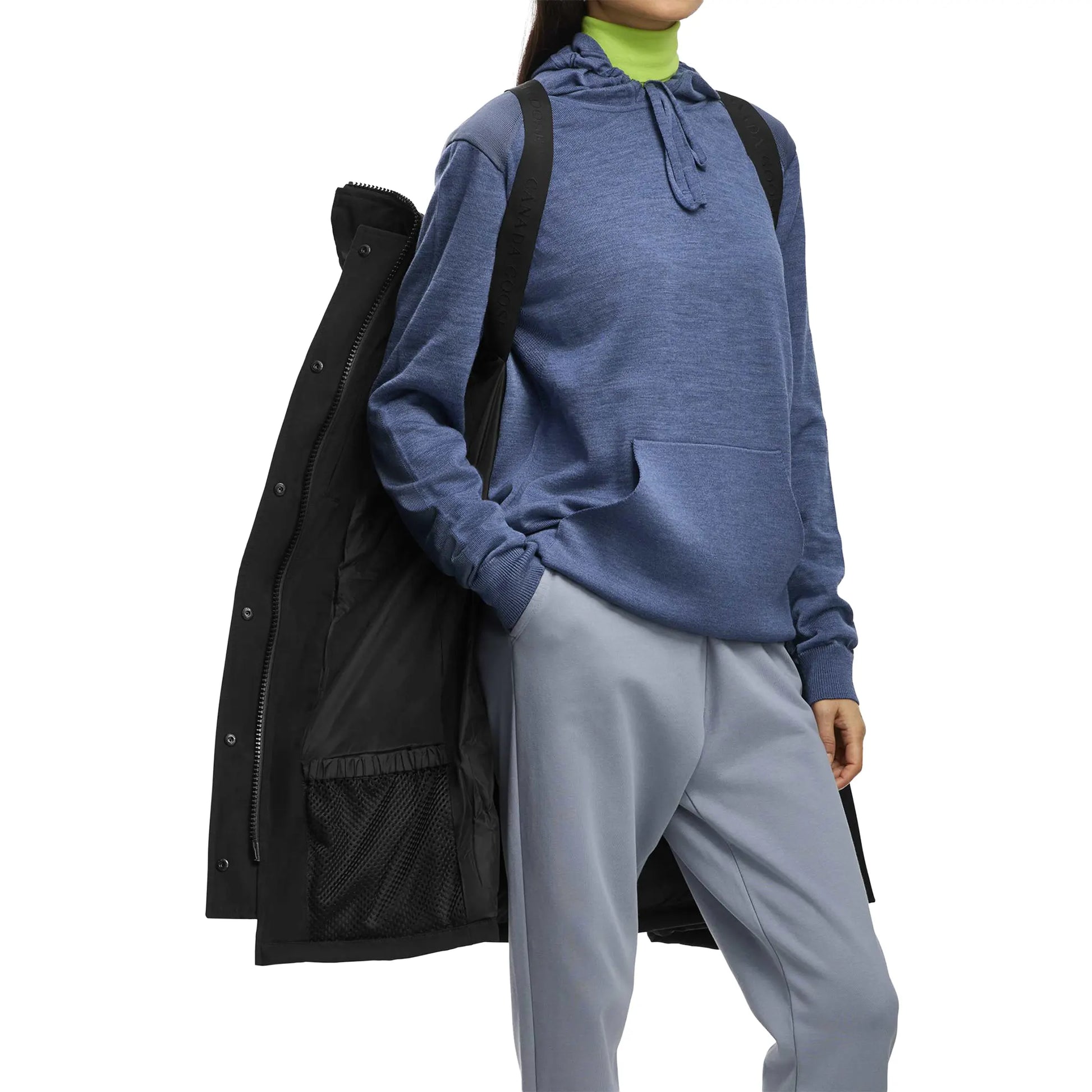 Canada Goose’s women’s Shelburne Parka arrives in sleek black with a longline, quilted silhouette and a weather-resistant shell. Down insulation and a snug hood lock in warmth, while a two-way zip and snap placket keep wind out. Side-hem snaps, cosy hand pockets, and interior backpack straps add practicality. Finished with a tonal sleeve badge. Don’t miss out, get yours now.