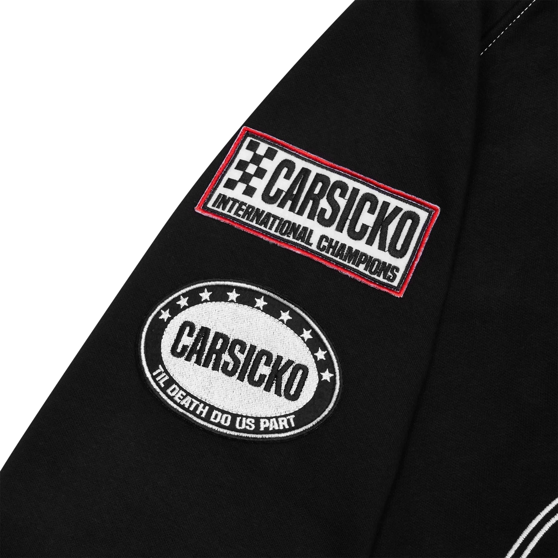 Inspired by vintage racing attire, this brand-new hoodie from up and coming label Carsicko showcases an oversized fit and vibrant graphics across the front. As well as the brand’s logo across the front, multiple motorsport badges are patched onto the sleeves, while the hoodie is fastened via a silver-tone metal zip that runs down the centre. Grab yours right here at Haven Footwear.