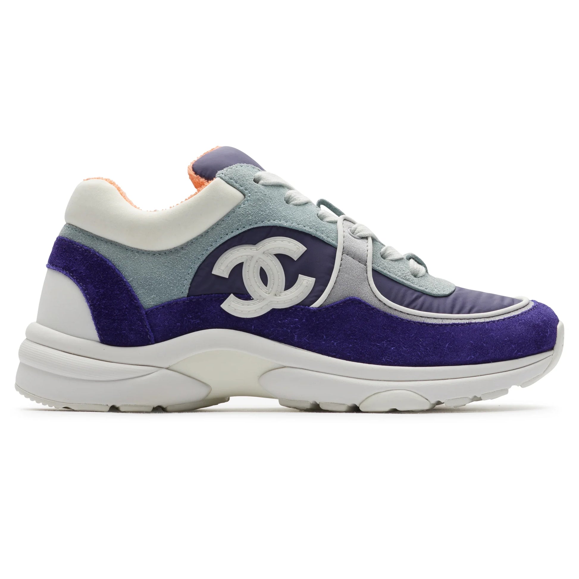 Chanel CC Logo Suede Nylon Purple Blue Sneaker - Preloved