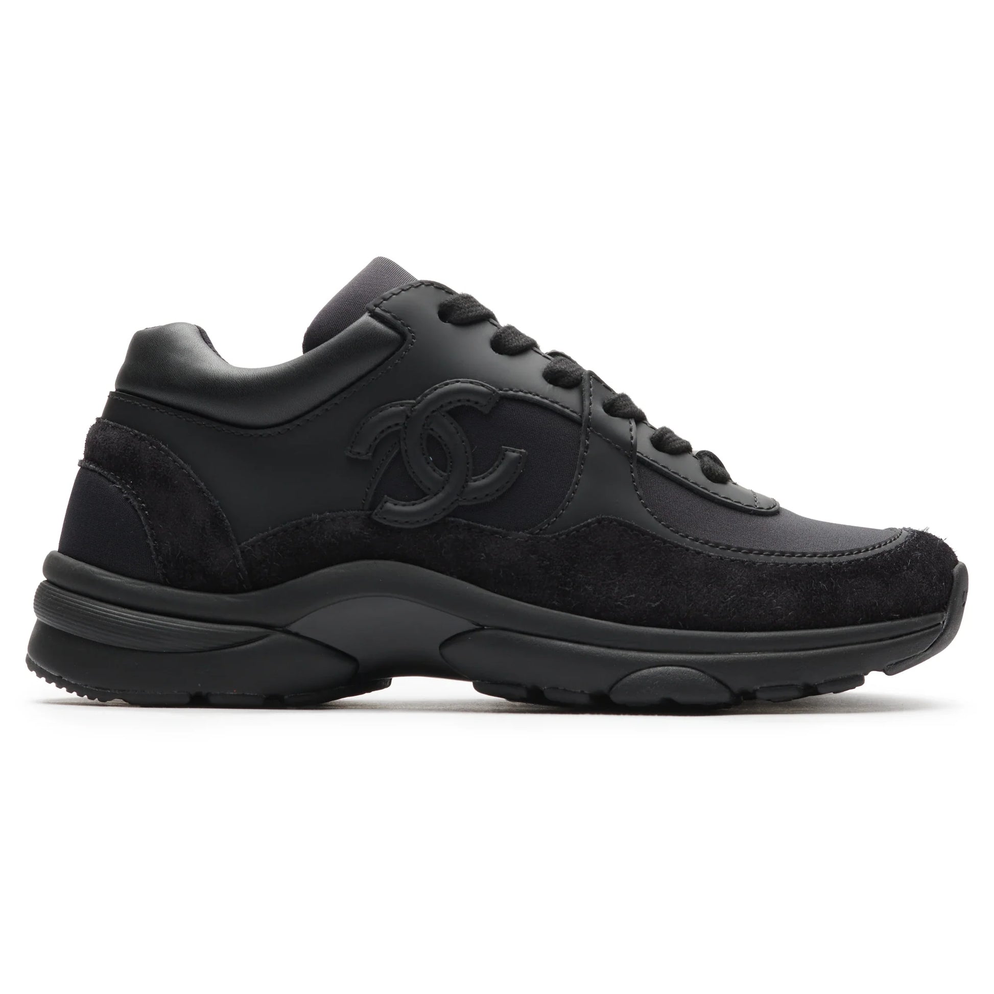 Chanel CC Logo Suede Triple Black Sneaker - Preloved