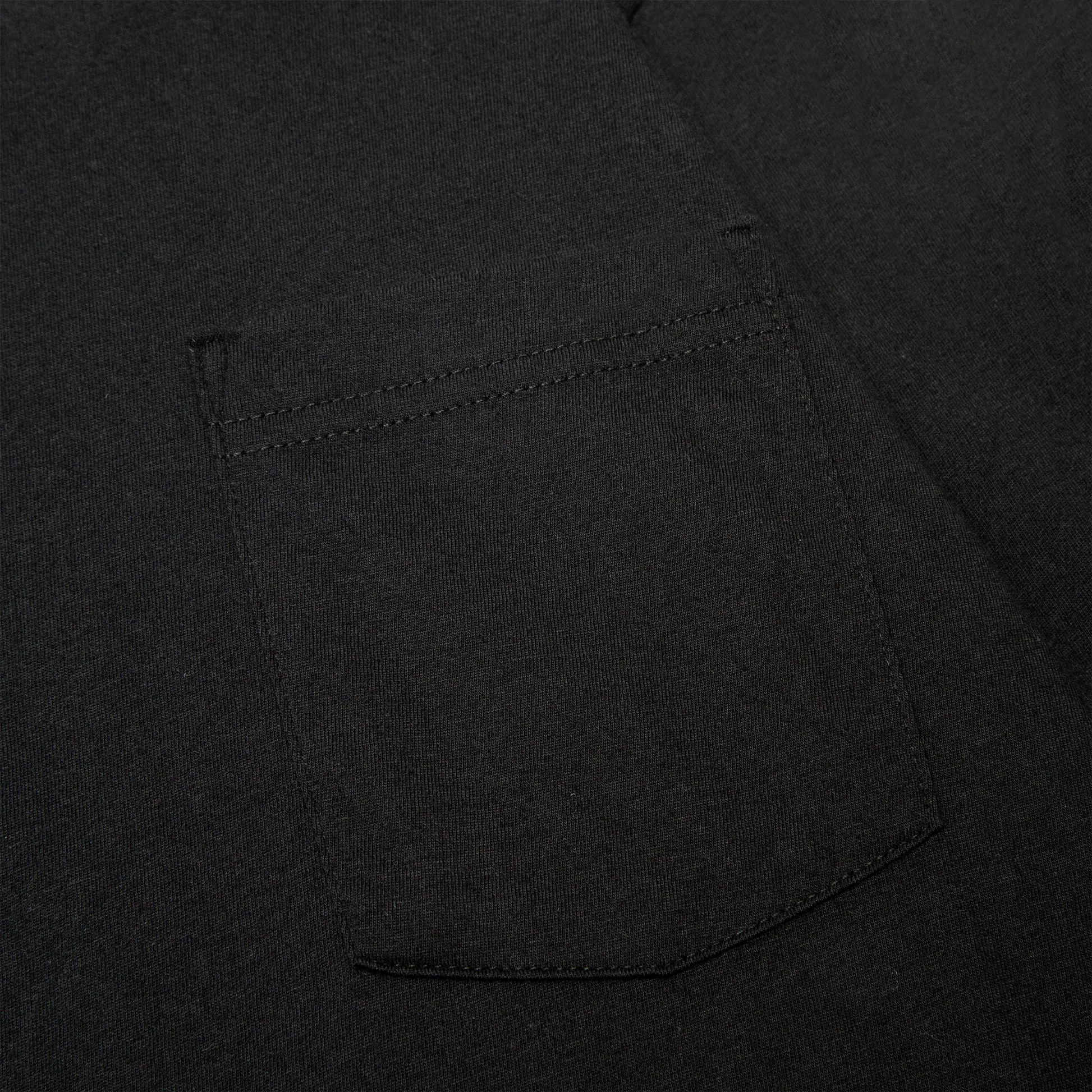 Meet the Chrome Hearts 1988 Neck Logo L/S in Black Blue, a clean long sleeve with attitude. Premium cotton, ribbed crew, and a handy chest pocket set the base. The highlight is the bold CHROME HEARTS script circling the collar in electric blue, with tonal details finishing the look. Pair it with denim or cargos and let the neckline do the talking.