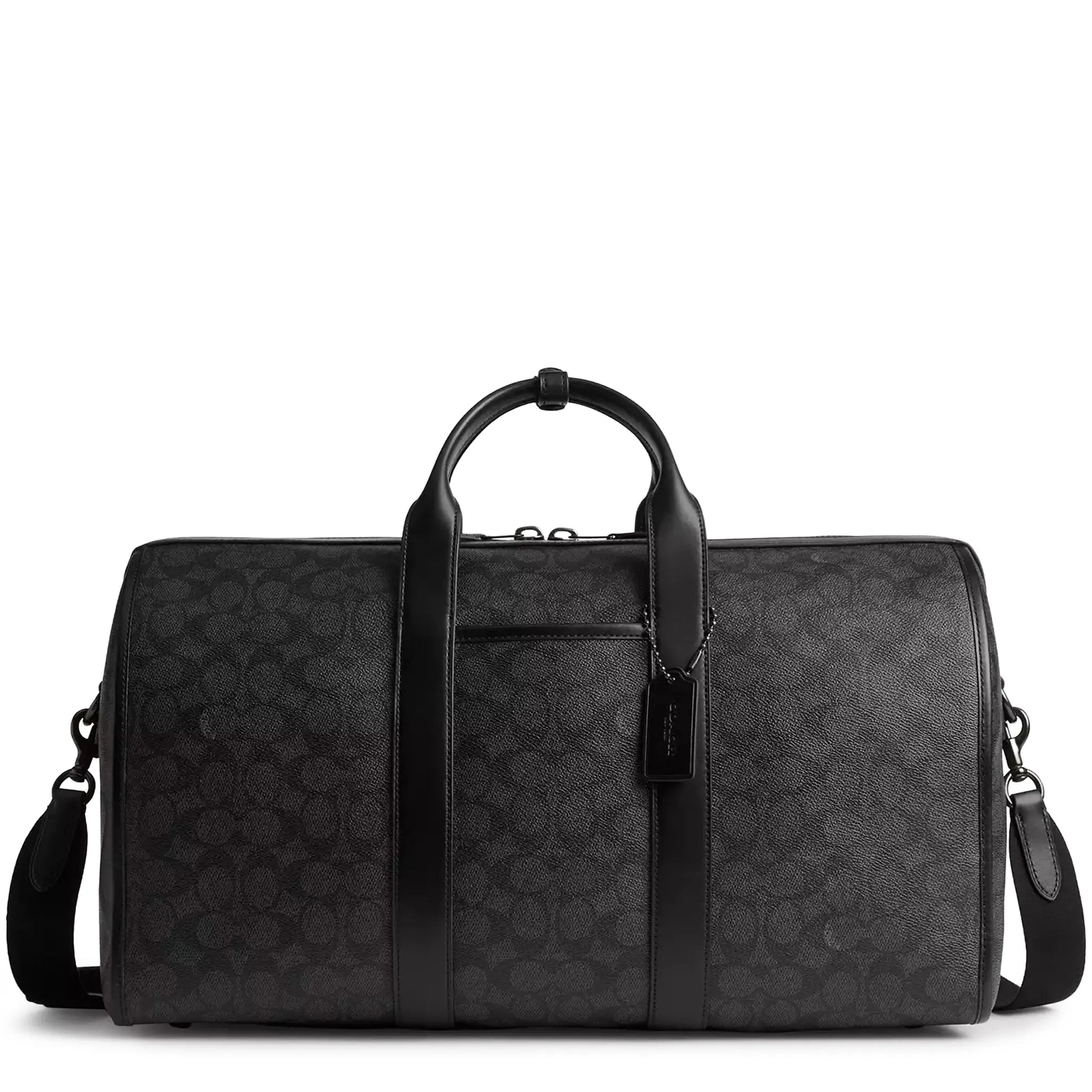 Made for weekend escapes, Coach Gotham Duffle 45 lands in charcoal Signature canvas with smooth black leather trims. The structured barrel shape, twin top handles, and detachable shoulder strap make travel easy. A secure double zip and external slip pocket handle quick access. Spacious inside for outfits and trainers, finished with tonal hardware and hangtag detail. Ready for the road. Grab yours today.