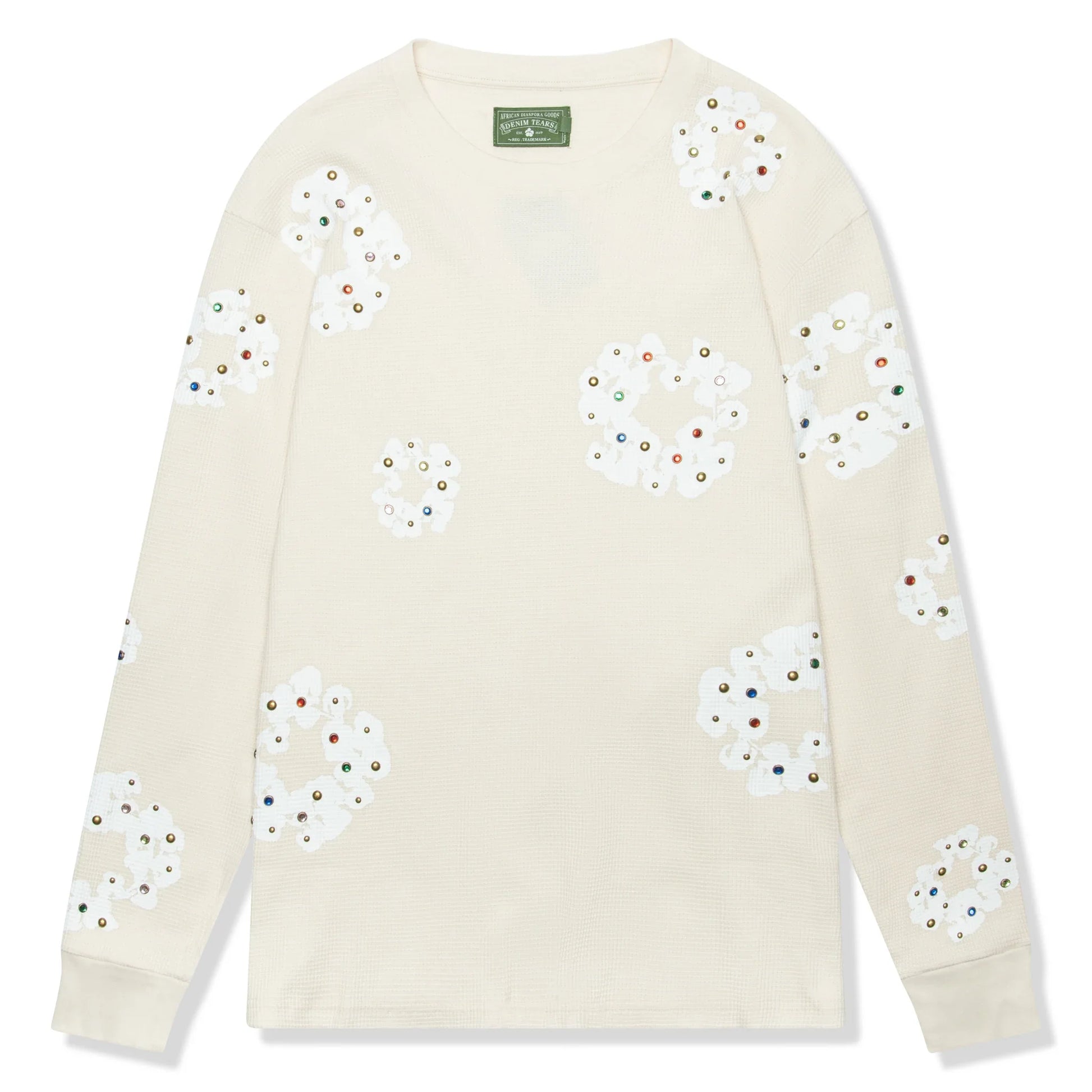Denim Tears Rhinestone The Cotton Wreath Long-Sleeve Thermal Oatmeal T Shirt