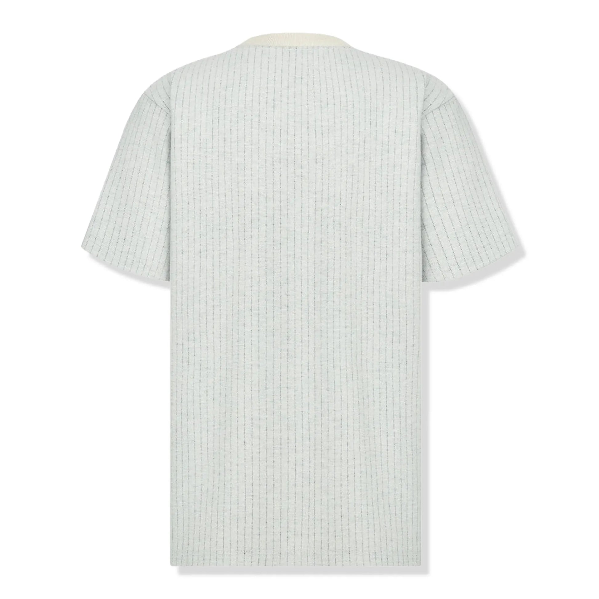 Update your rotation with the Dior Atelier Striped Chest Logo Grey T Shirt. Cut from soft grey cotton with fine vertical pinstripes, it features a contrast rib crew neck with V insert, a chest pocket, and navy Christian Dior Atelier Paris Avenue Montaigne embroidery. Relaxed sleeves keep it easy with jeans or tailoring, giving subtle luxury for daily fits. Secure yours now.