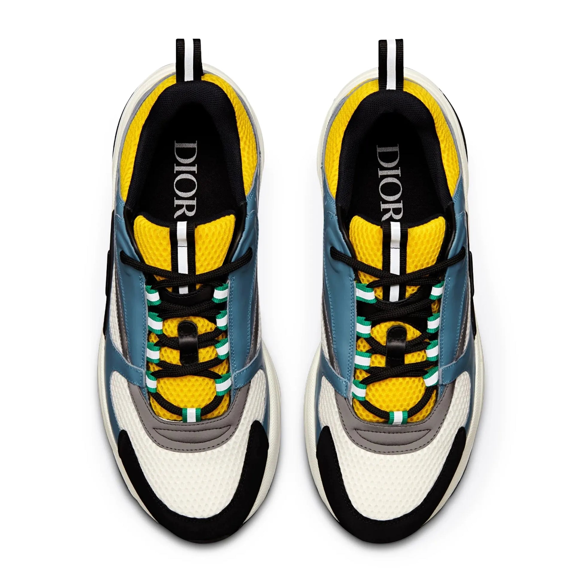 Meet the Dior B22 Blue Yellow Trainer, a bold take on the house’s chunky runner. White 3D mesh teams with blue leather overlays, black suede guards and hits of hi-vis yellow across the tongue and heel. The sculpted midsole features the DIOR window detail and traction-ready rubber below. Cushioned interiors keep it comfortable from the streets to the studio. Lace up a statement every time you step out.