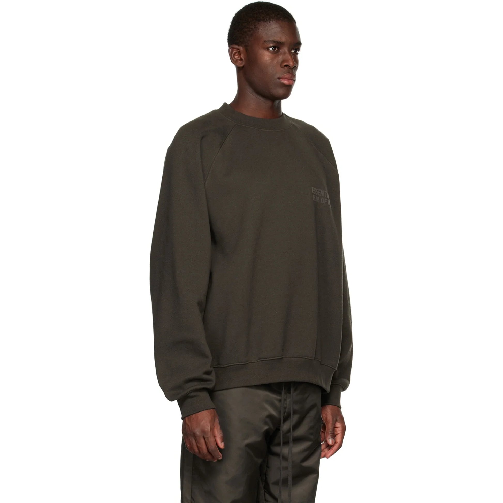 Update your rotation with Fear of God Essentials’ Off Black sweatshirt from SS23. Cut in a relaxed fit, this crewneck pairs soft heavyweight cotton fleece with raglan sleeves for easy movement. A tonal ESSENTIALS Fear of God chest hit keeps it clean, while a rubberised back label signs it off. Ribbed cuffs and hem lock in shape. Wear it with cargos or denim. Shop yours before they’re gone.