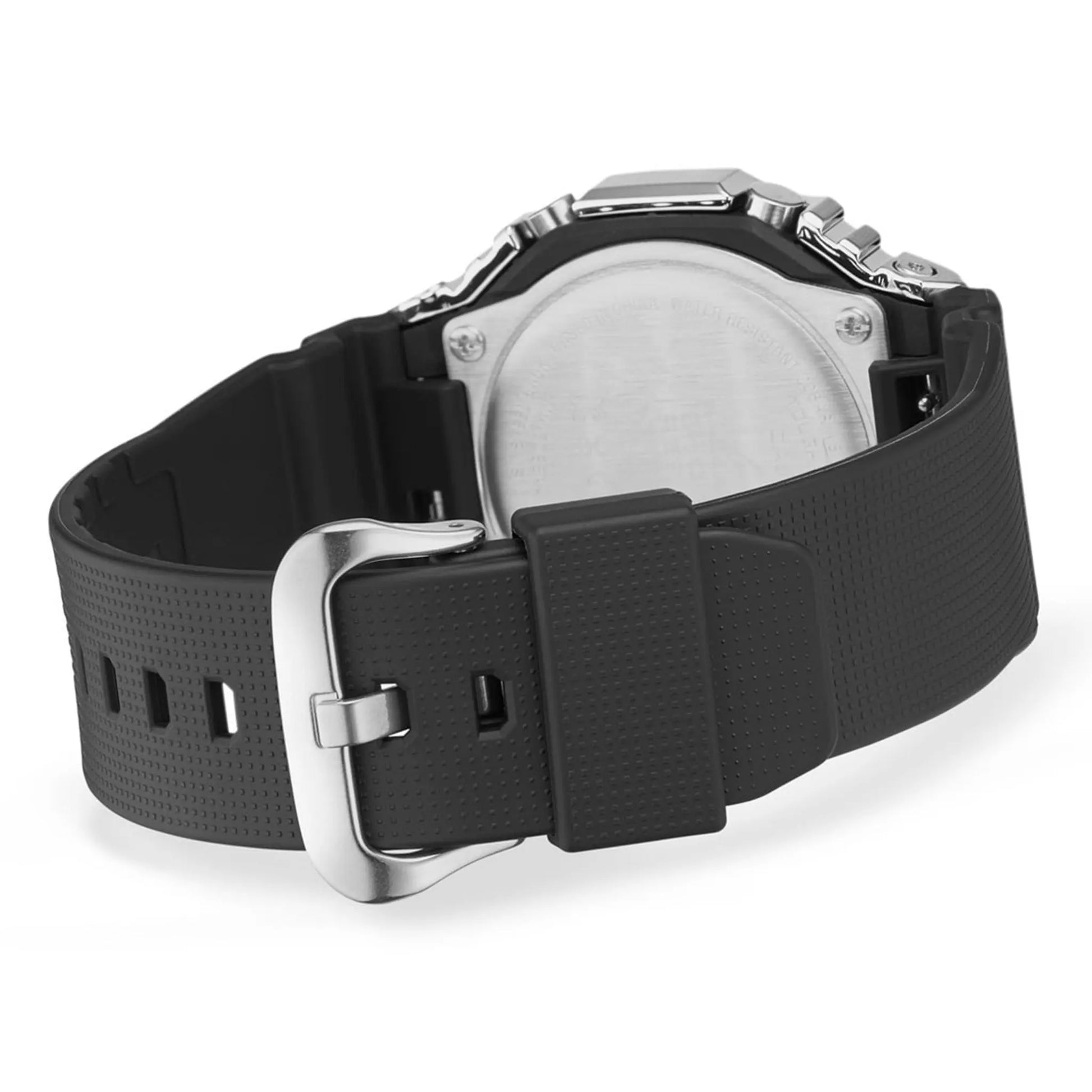Bring a fresh look with G-Shock’s GBM-2100A-1A2ER. The octagonal silver bezel frames an ice blue ana-digi dial with Tough Solar power and Bluetooth sync, while luminous markers keep time clear. A textured black resin strap and shock-resistant case mean lasting durability. Stainless steel buttons, a stopwatch and alarms complete the package. Street tough, tech smart, easy to style. Cop yours right here.