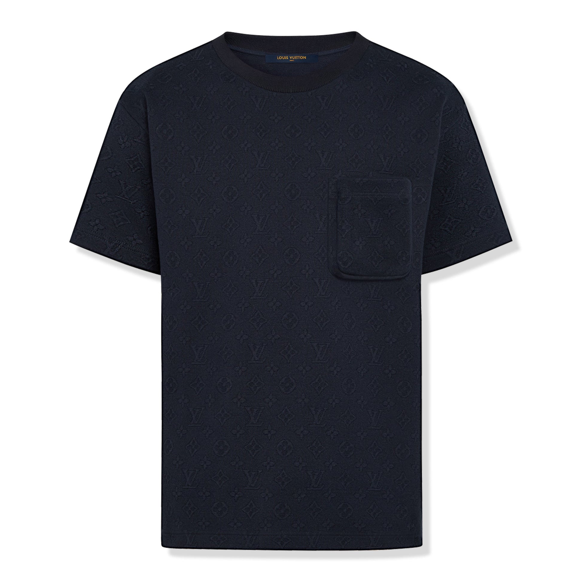 Indulge in the luxury of the Louis Vuitton Monogram Signature 3D Pocket Cotton T-Shirt in dark blue. Seamlessly merging artistry with comfort, this garment effortlessly demonstrates the brand's commitment to superior craftsmanship and iconic design.