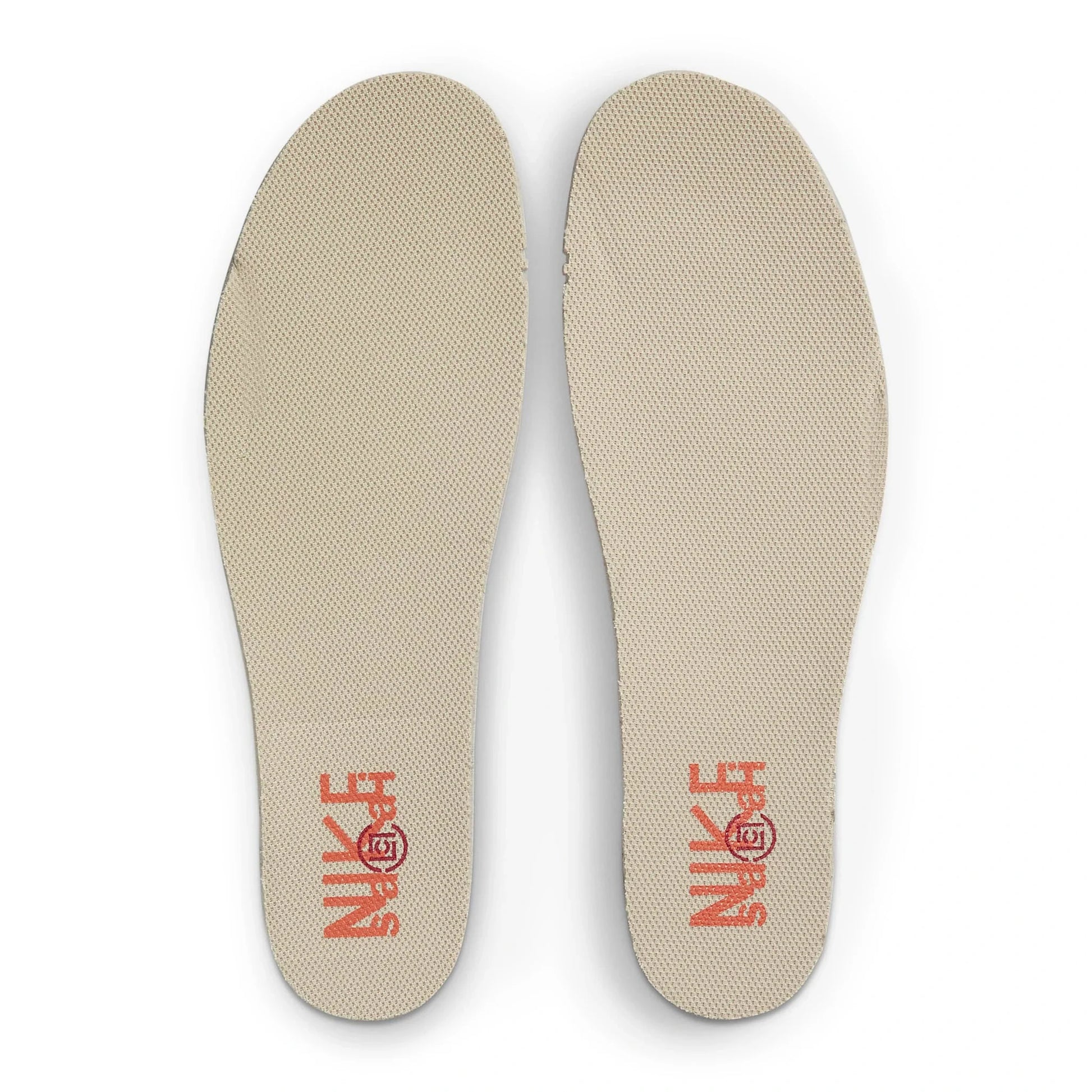 The Nike LD Waffle Sacai Clot Net Orange Blaze displays a base TPE translucent with inserts in Sweden beige. There are several reminders of green on the eyelets and the tongue. There is the usual doubling of the main elements as well as a gum sole.