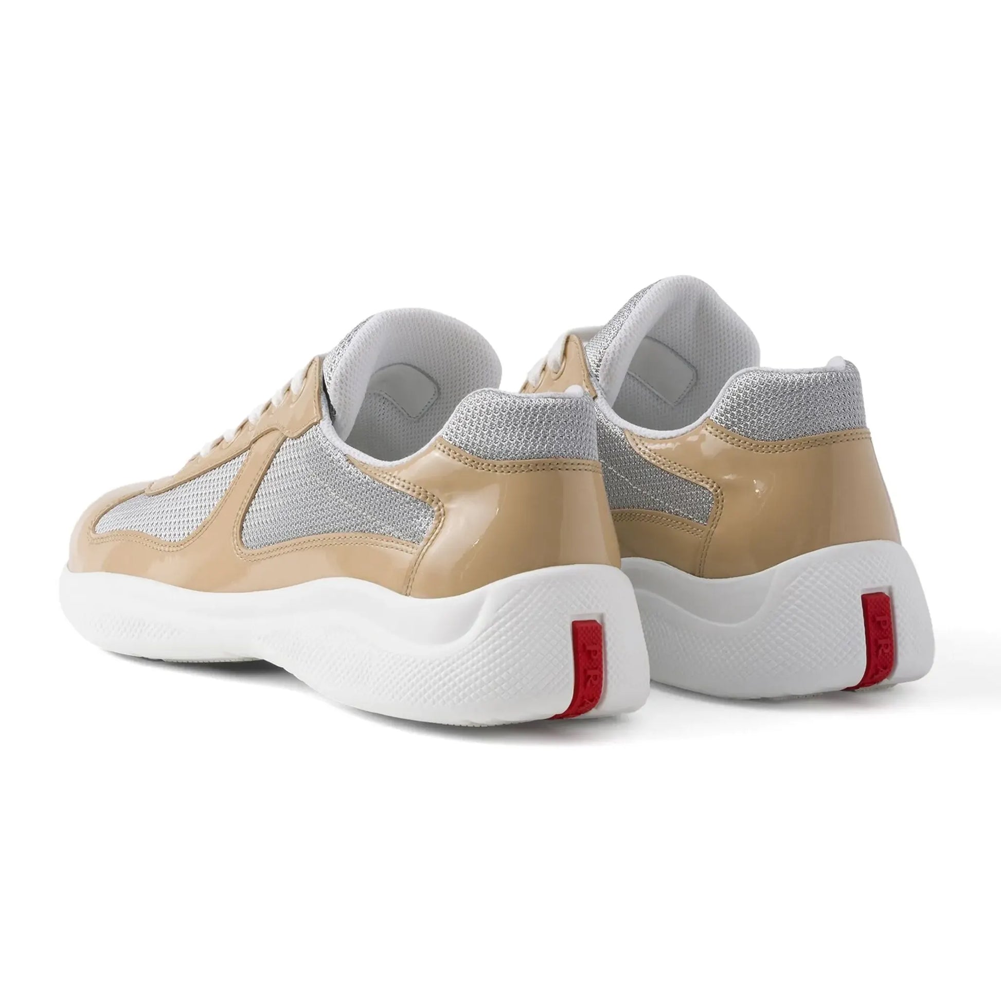 Prada Americas Cup Logo Patch Patent Beige Sneaker