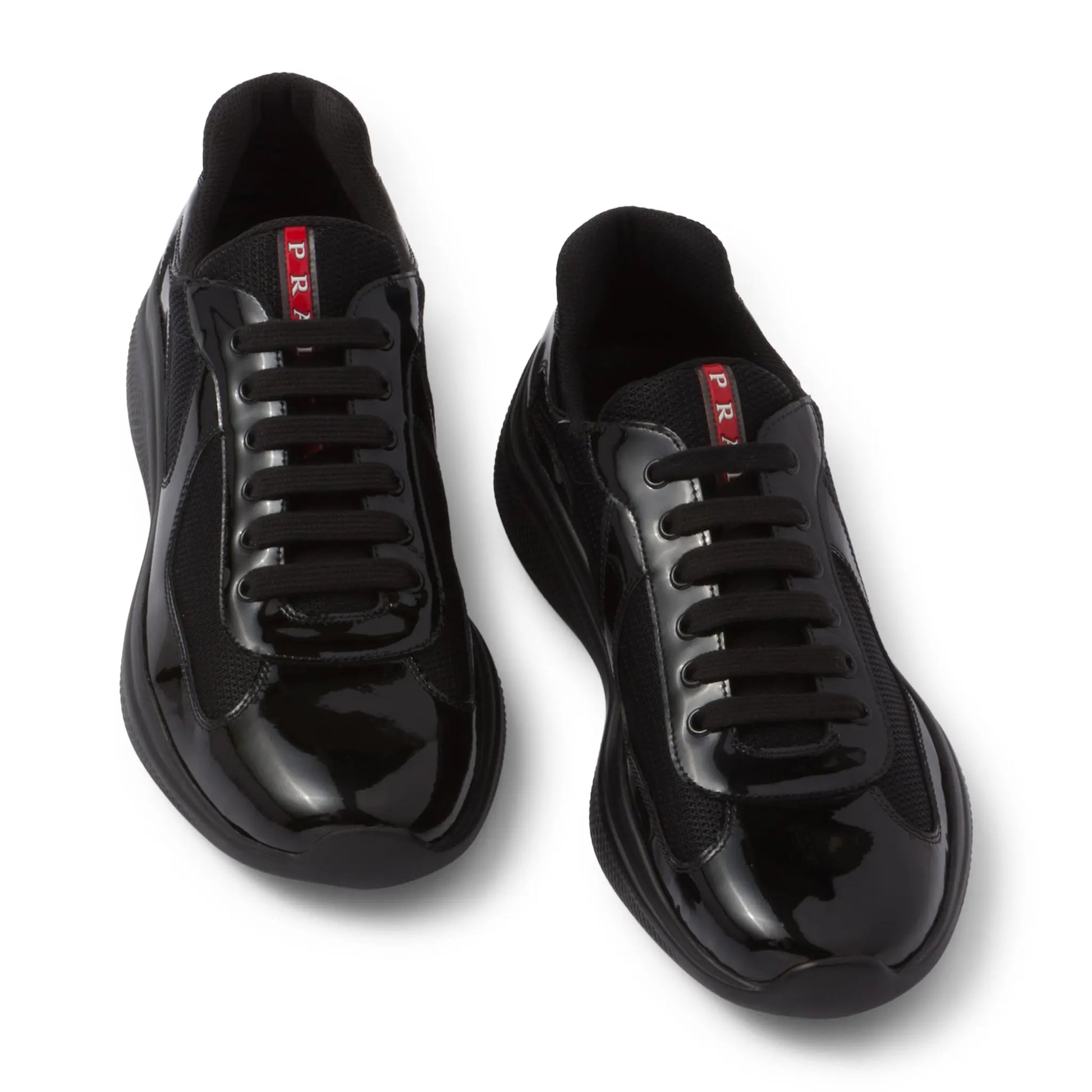 Prada Americas Cup Patent Leather And Technical Fabric Black Sneakers