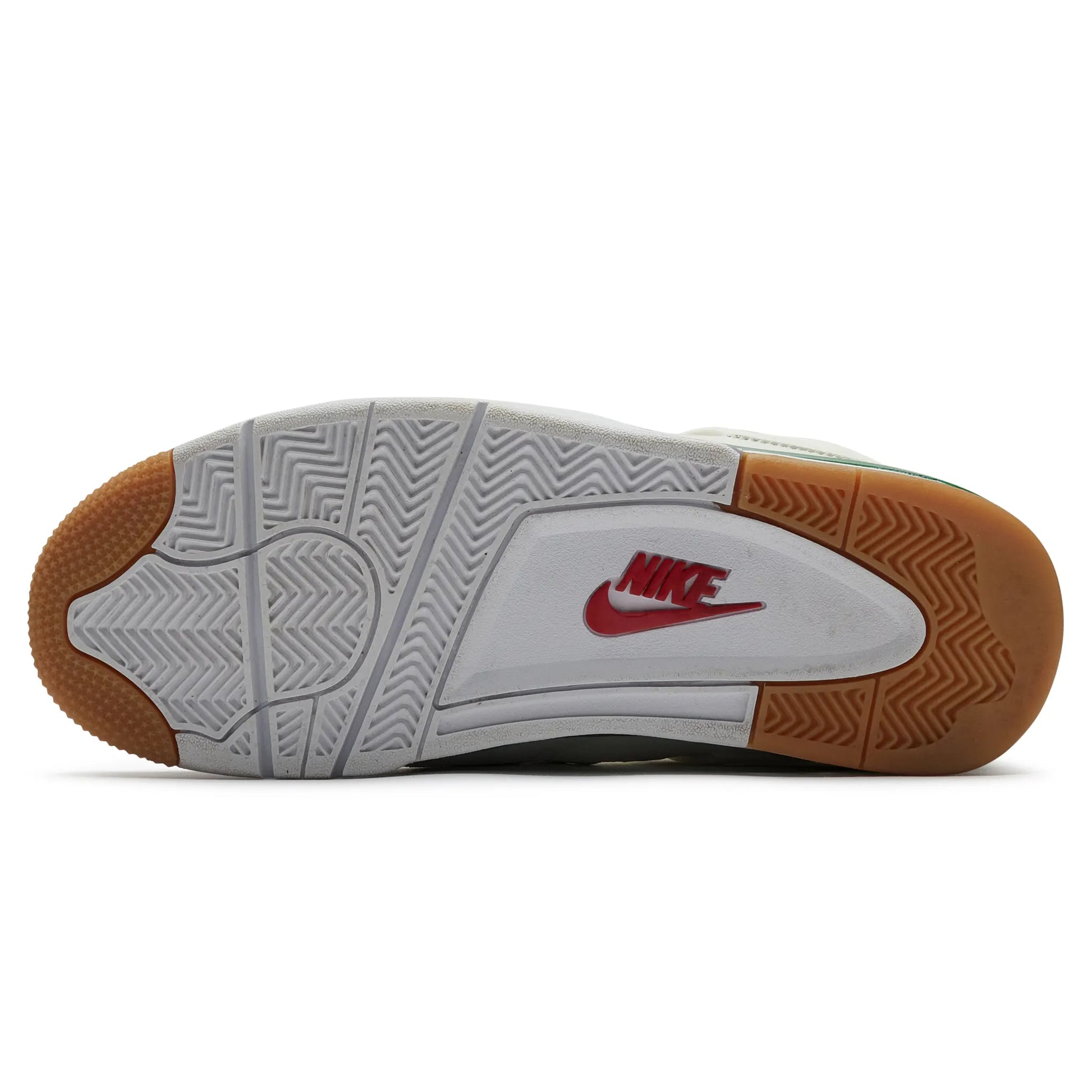 The Preloved Air Jordan 4 Retro SB 'Pine Green' offers a new interpretation of the iconic AJ4 by fusing skateboarding functionality with basketball tradition. Pine Green details on the midsole, eyelets, and heel tab create a striking yet tidy contrast to the premium white leather and suede upper. This SB edition features a gum rubber outsole for improved grip and board feel, as well as a retooled cushioning system for more comfort and durability. This sneaker is ideal for both skaters and Jordan fans seeking performance and flair in a single famous silhouette because of its visible Air unit, iconic mesh detailing, and skate-ready modifications.