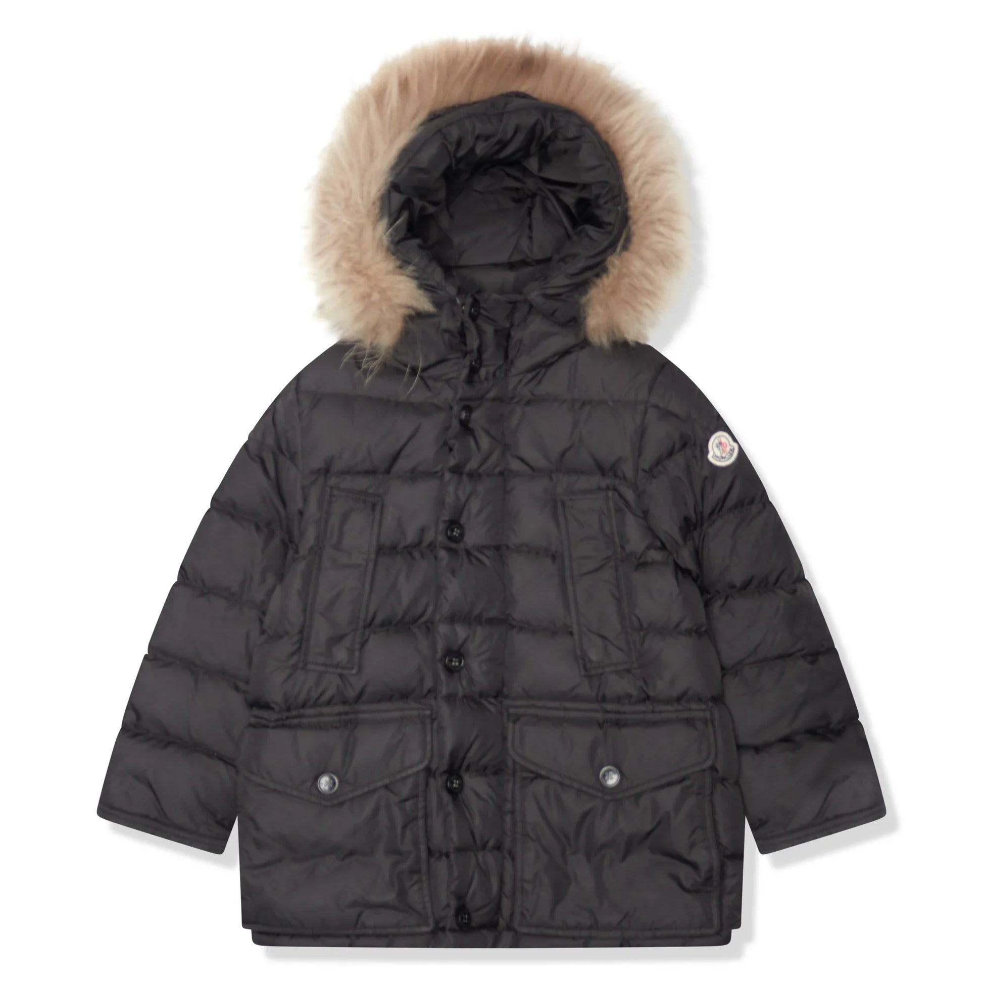 Preloved - Moncler Cluny Black Short Down 100% Real Fur Kids Parka Jacket