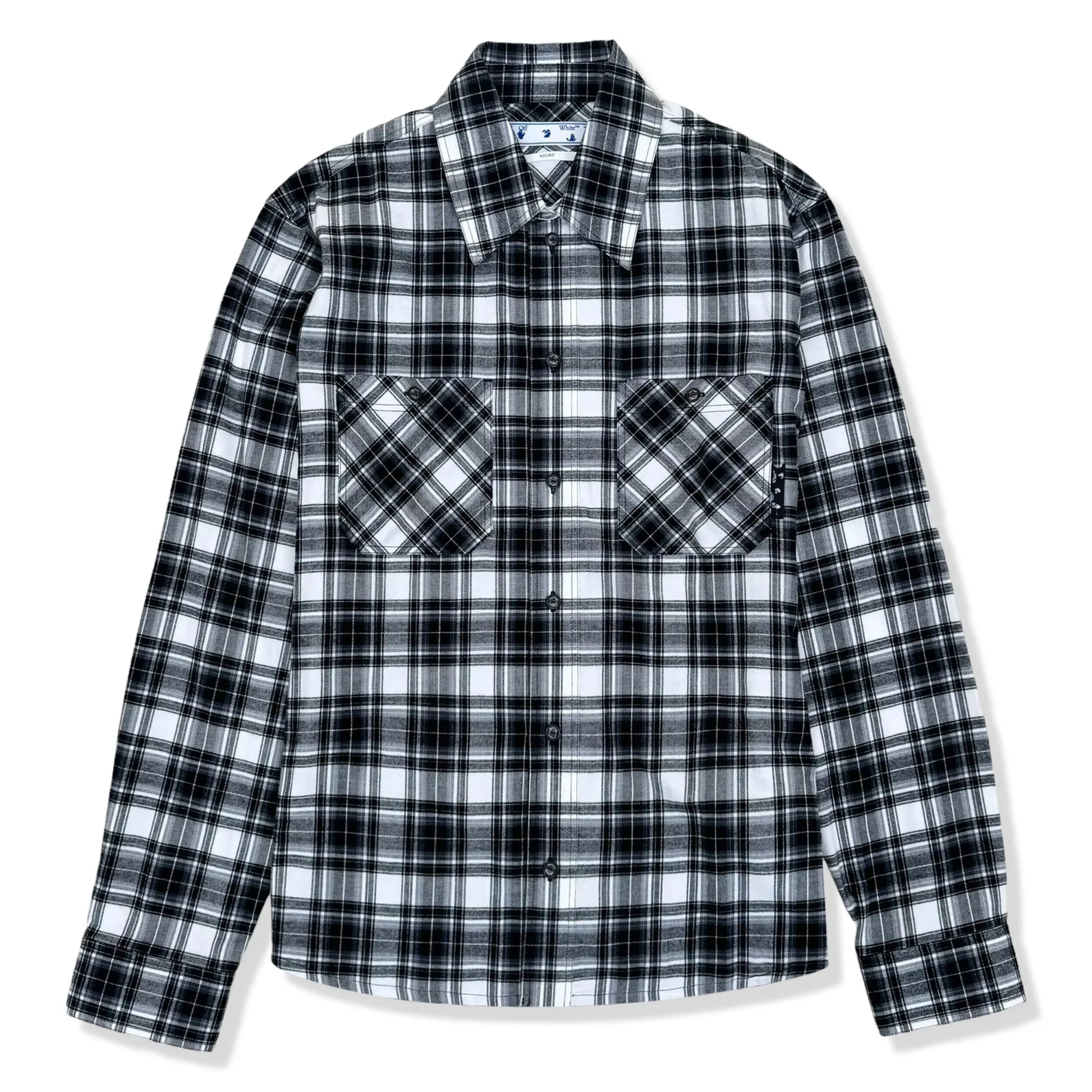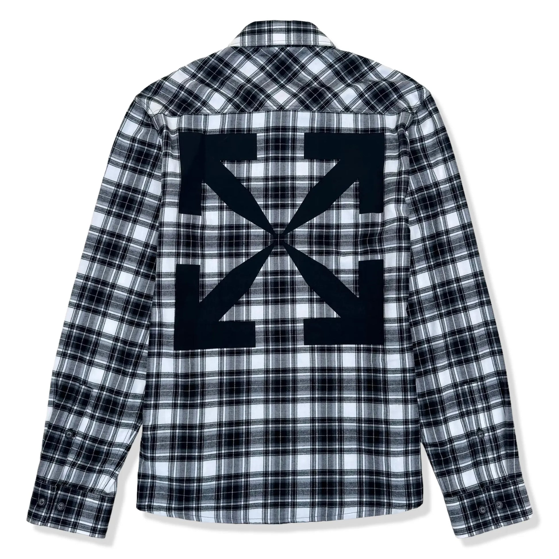 Step up your style with this preloved Off-White Checked Arrow shirt in black and white. The soft cotton flannel carries a clean plaid pattern, while twin chest pockets pop with diagonal checks. Turn around for the oversized matte Arrow at the back, an instant signal of the label’s DNA. Button cuffs, curved hem, easy layering year-round. Shop yours before they’re gone.