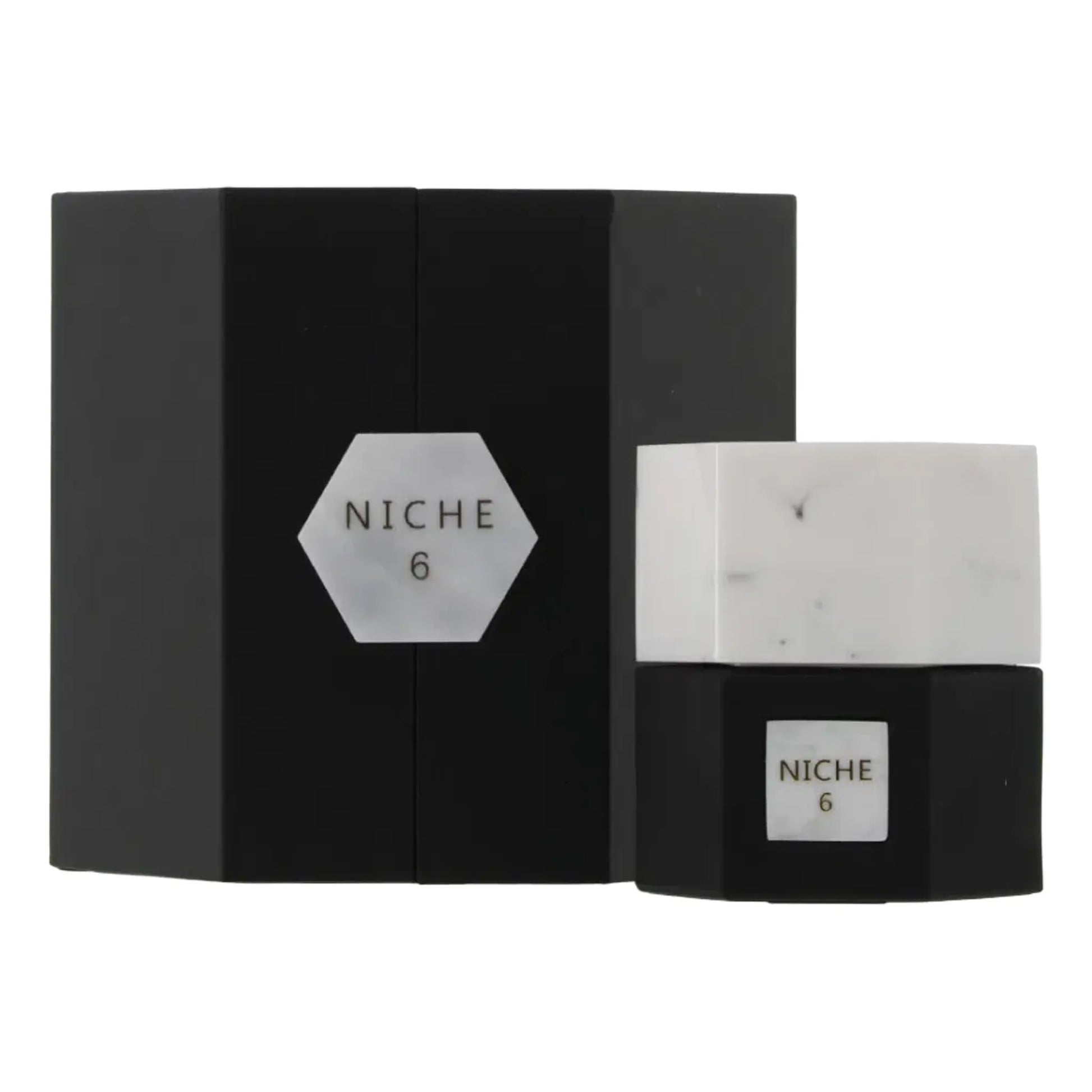 Update your fragrance rotation with REEF Niche 6 Eau De Parfum. Opening with rich berry notes, it moves into a warm tobacco heart before drying down to smooth vanilla. The hexagon bottle looks sharp in matte black with a marble-style cap and gold branding, boxed like a keepsake. A rich, unisex vibe for day or night. Secure yours now.
