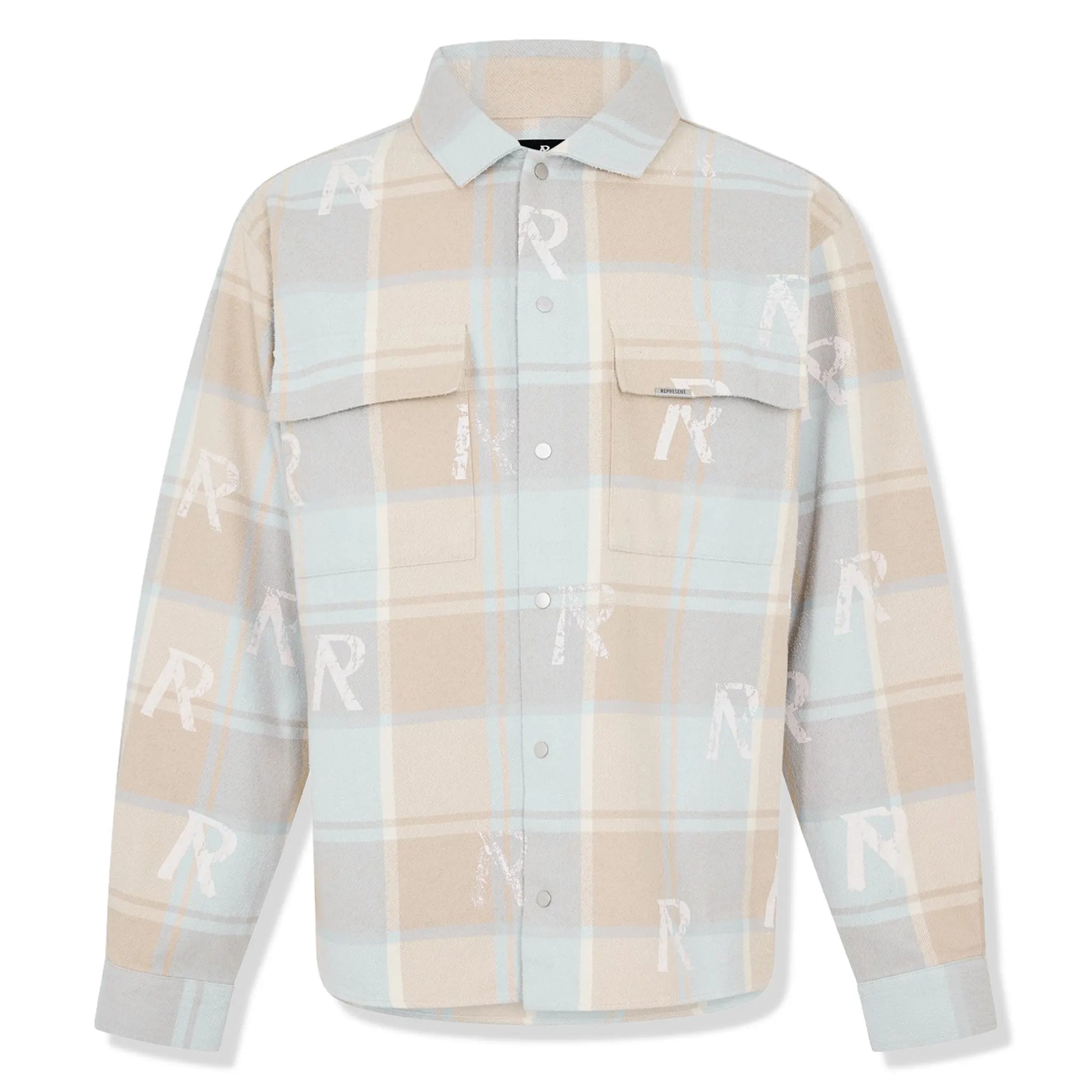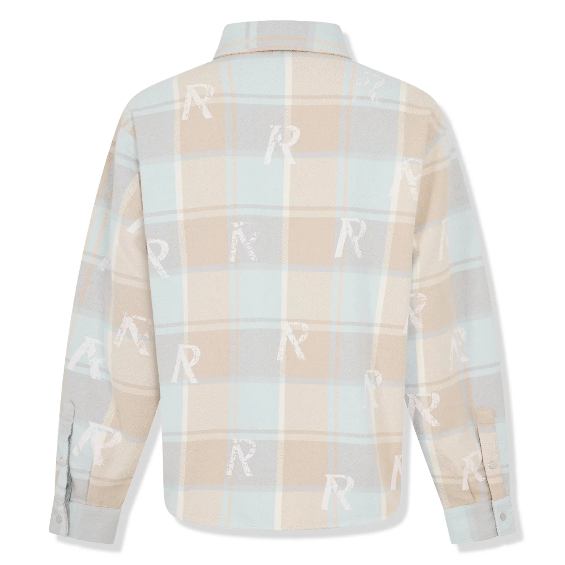 Bring a fresh look with Represent’s All Over Initial Flannel shirt in beige and white. Cut relaxed from soft brushed flannel, it features pastel blue plaid, scattered R logos, and a snap front. Twin chest pockets, button cuffs, and a curved hem keep it easy over tees or under outerwear. Clean, graphic and ready for rotation. Pick up your piece today.
