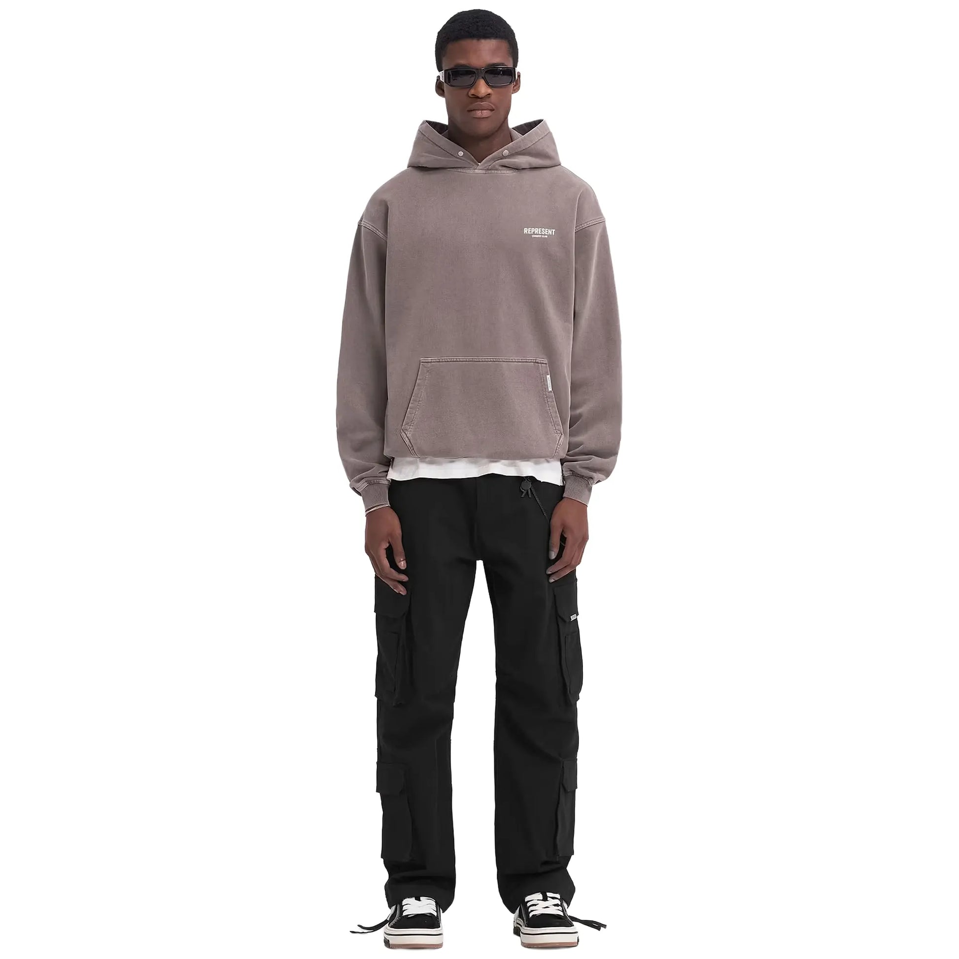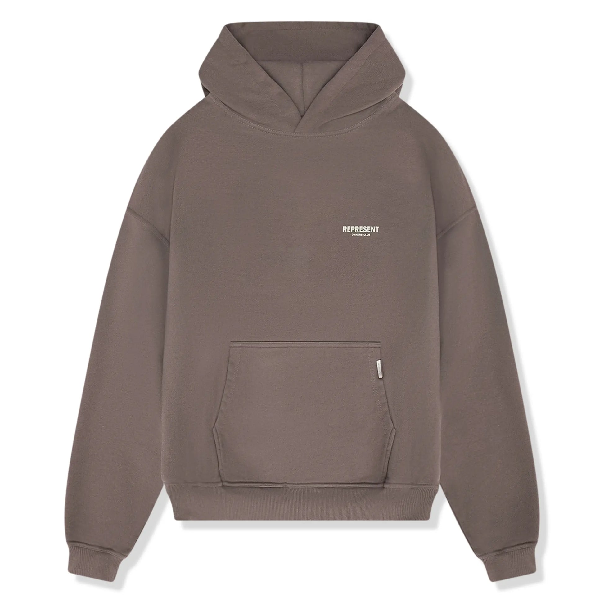 Update your rotation with the Represent Owners Club Hoodie in Fog. Cut relaxed with dropped shoulders, it features soft washed fleece, a drawcord-free hood with metal stud detail, and rib trims. Minimal chest print up front, bold Owners Club graphic across the back. A roomy front pouch pocket keeps essentials handy. Clean, easy and built for daily styling. Shop yours before they’re gone.
