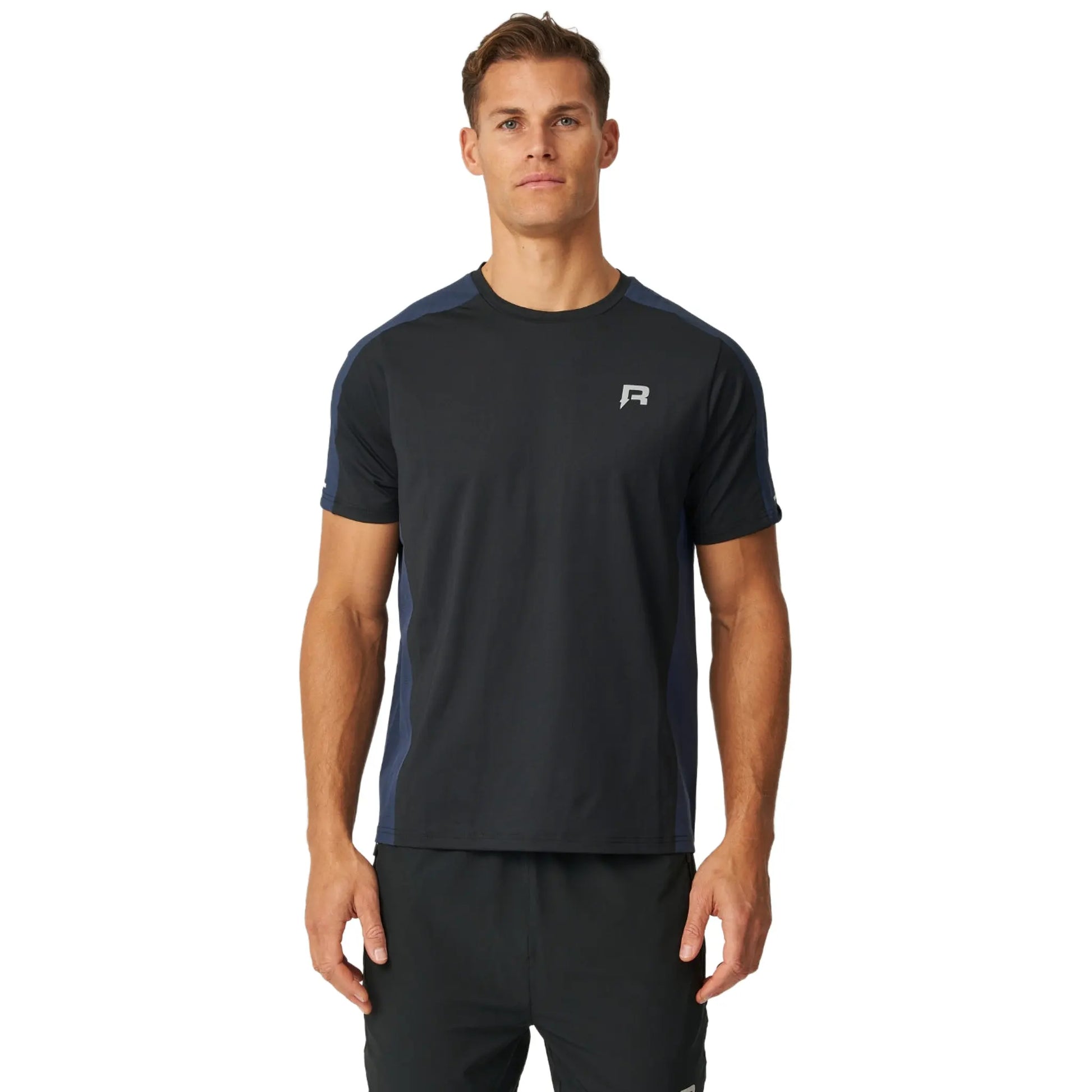 The Reprimo Nova Black Navy T Shirt pairs a soft, quick-drying fabric with a clean crew neck cut. Navy shoulder and side panels sharpen the look, while reflective accents and the chest R logo bring subtle detail. Perfect for runs, gym or rest days. Secure yours now.