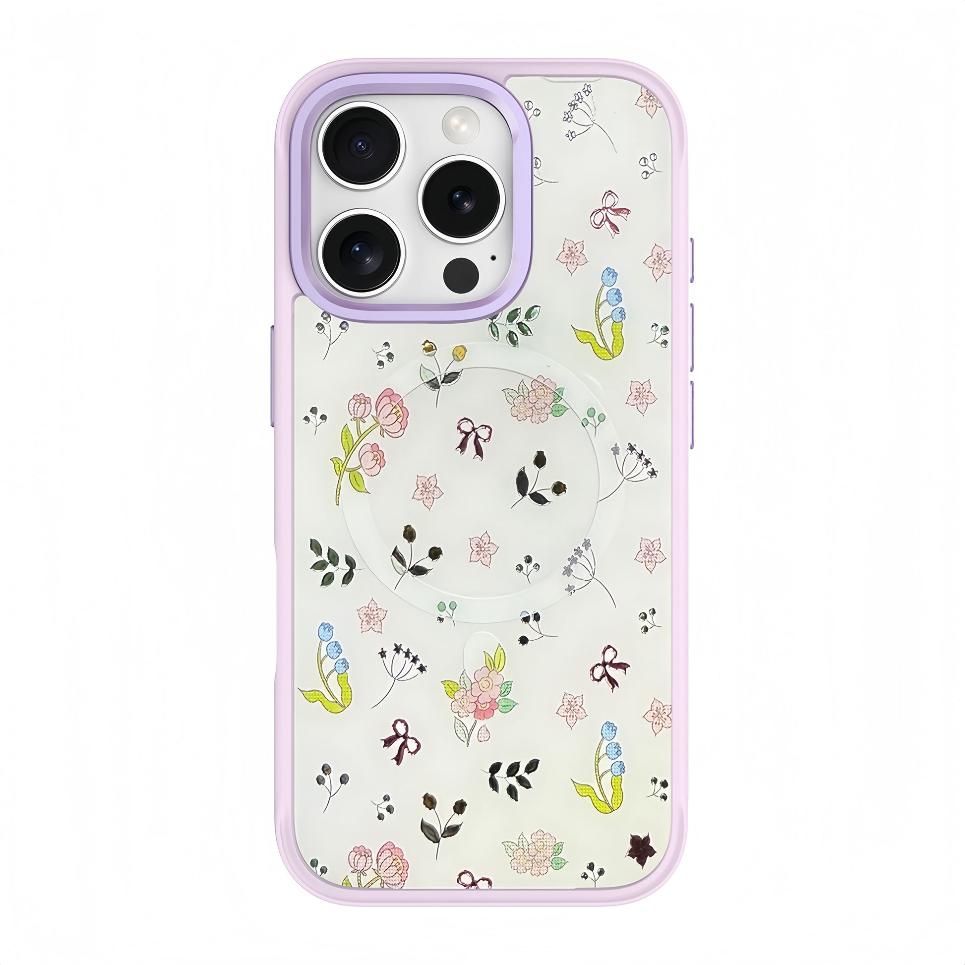 This phone case features delicate motifs of small flowers, bows, and berries in soft, refreshing colors. Styled in a sweet, artistic cottagecore theme, it brings a romantic and refined touch to your phone—perfect for those who adore fresh, charming aesthetics.