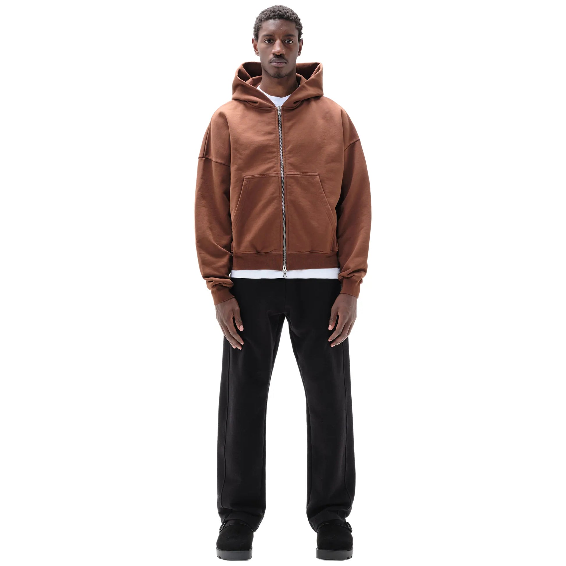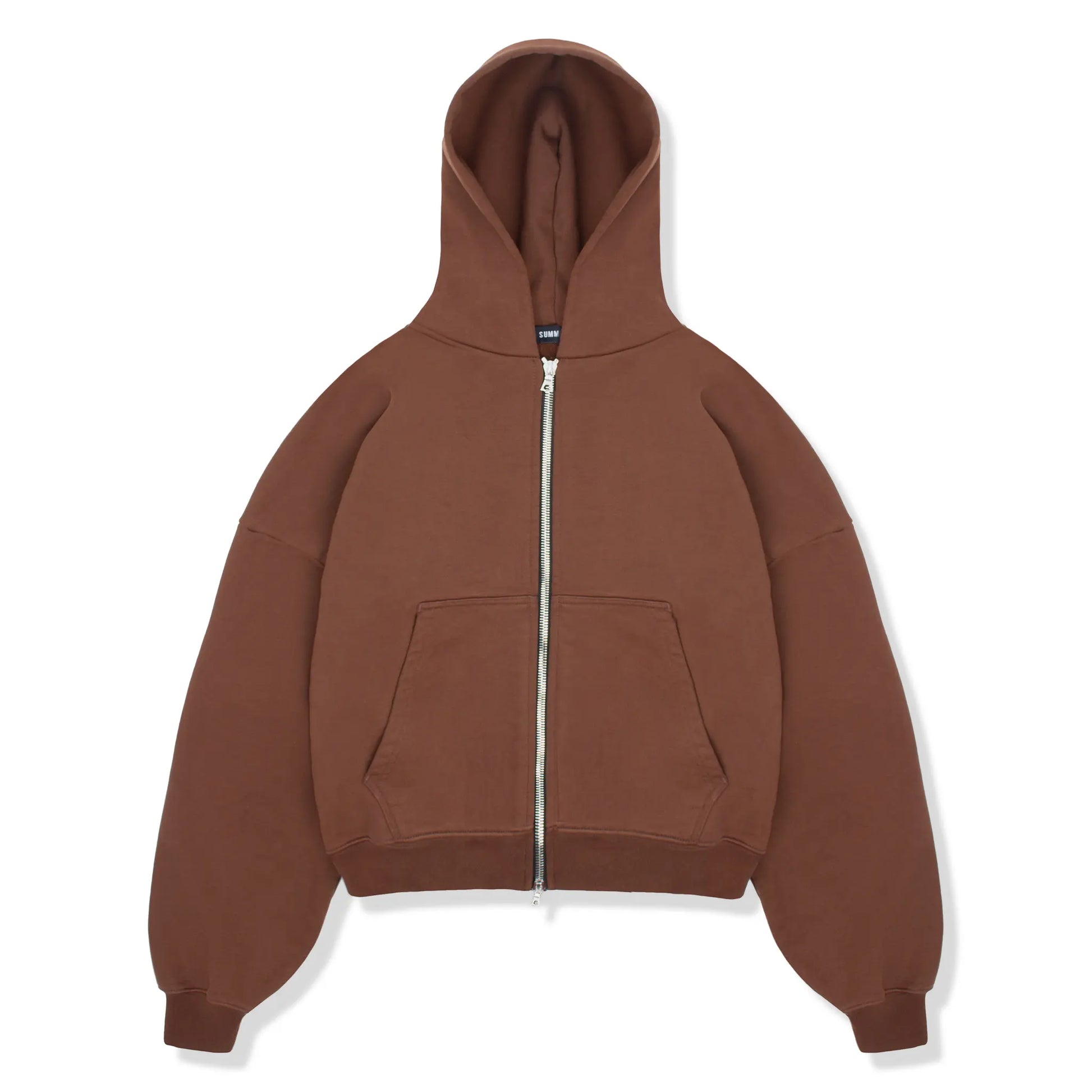 Update your fit rotation with the Summit Heavyweight Brown Zip-Up Hoodie. Cut to a relaxed, boxy fit with dropped shoulders, it lands in a deep cocoa shade and uses thick fleece for serious warmth. A full-length metal zip, ribbed trims, and a roomy hood keep things practical, while the split front pocket sorts your essentials. Clean, minimal, and easy to layer across seasons. Don’t miss out, get yours now.