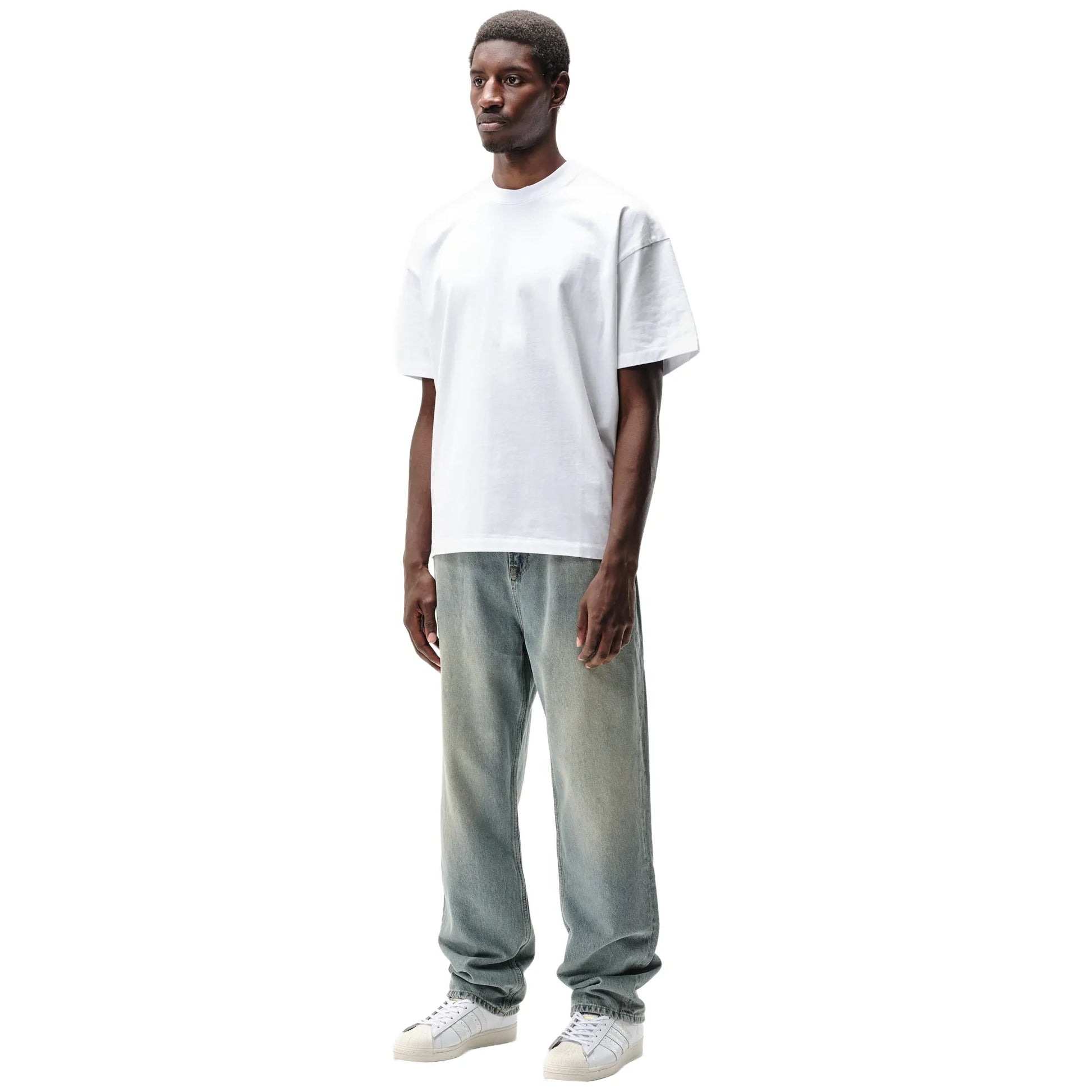 The Summit Straight Leg Jeans in blue come with a relaxed fit and mid-rise. The vintage wash has soft fading for that worn-in look. Heavyweight cotton keeps its shape while hems stack clean over trainers. Finished with five pockets and belt loops for quick styling. Simple, reliable, and ready for daily rotation. Shop yours before they’re gone.