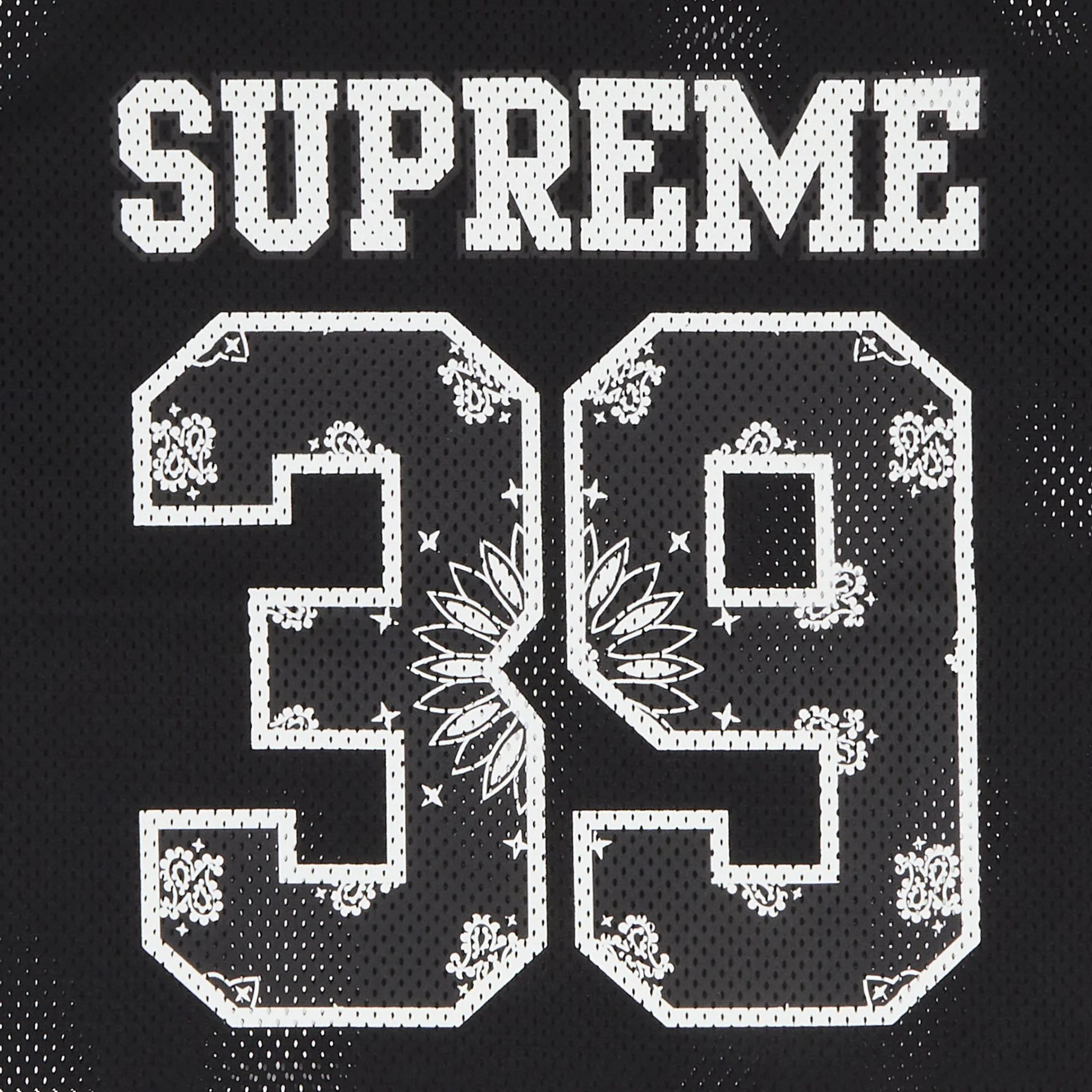 The Supreme Bandana Black Football Jersey, with its aggressive attitude and all-over black paisley bandana print, combines athletic flair with streetwear edge.  Its breathable mesh fabric provides comfort and performance, while its oversized design and embroidered Supreme insignia on the chest give it an uniquely streetwise appearance. For anyone looking to up their streetwear game with a unique, buzzworthy item, this jersey is perfect for layering or wearing alone. It makes a statement both on and off the pitch.