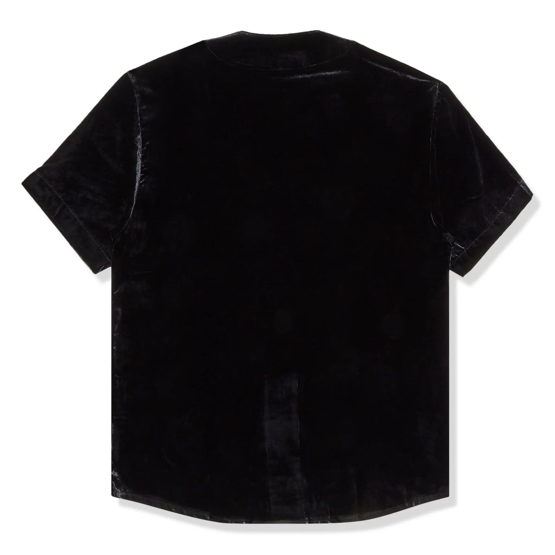 The Supreme Velvet Black Baseball Jersey, a remarkable fusion of grace and athletic flair, will improve your streetwear game. This jersey has a rich black finish, prominent embroidered Supreme branding, and is made of plush, premium velvet. It is comfortable to wear alone or layered because to its relaxed shape and traditional button-up front, providing a look that is appropriate for both day and night. Perfect for people who wish to make a statement with a polished, self-assured edge.