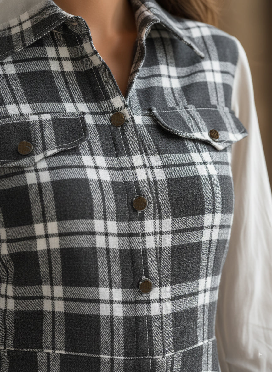 This elegant midi dress infuses classic retro style with a modern twist. The exquisite black and white checkered patchwork design perfectly blends timeless design with contemporary fashion trends. Long sleeves add a touch of sophistication, making it ideal for various occasions.