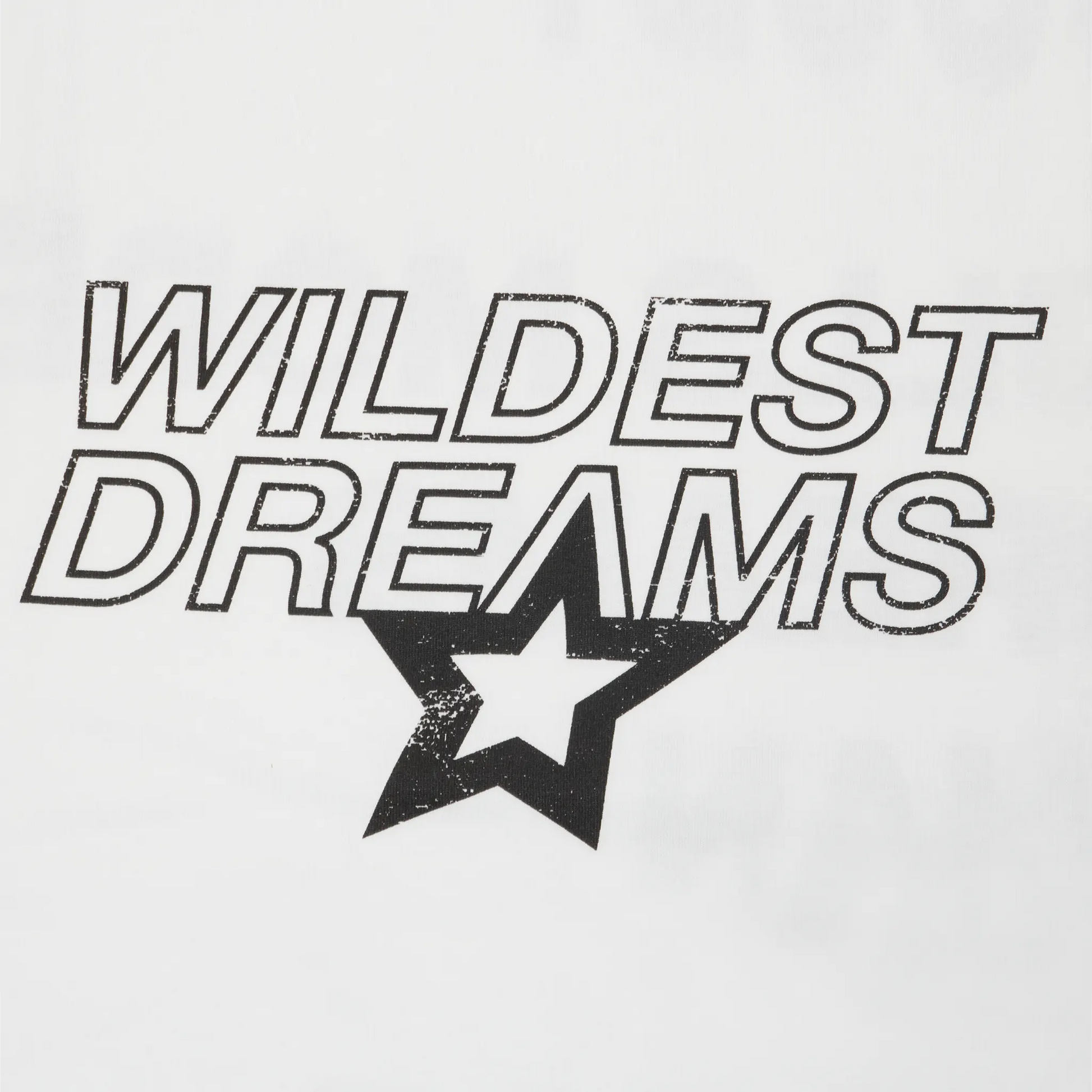 Step up your style with the Wildest Dreams Doubt L/S Tee in crisp white. Soft cotton, long sleeves and ribbed cuffs keep it comfy for all-day wear, while the bold black outline graphic and cut-out star bring that street ready energy. Crewneck shape sits clean under jackets or on its own. Subtle distressed print gives it a lived-in character. Grab yours today.