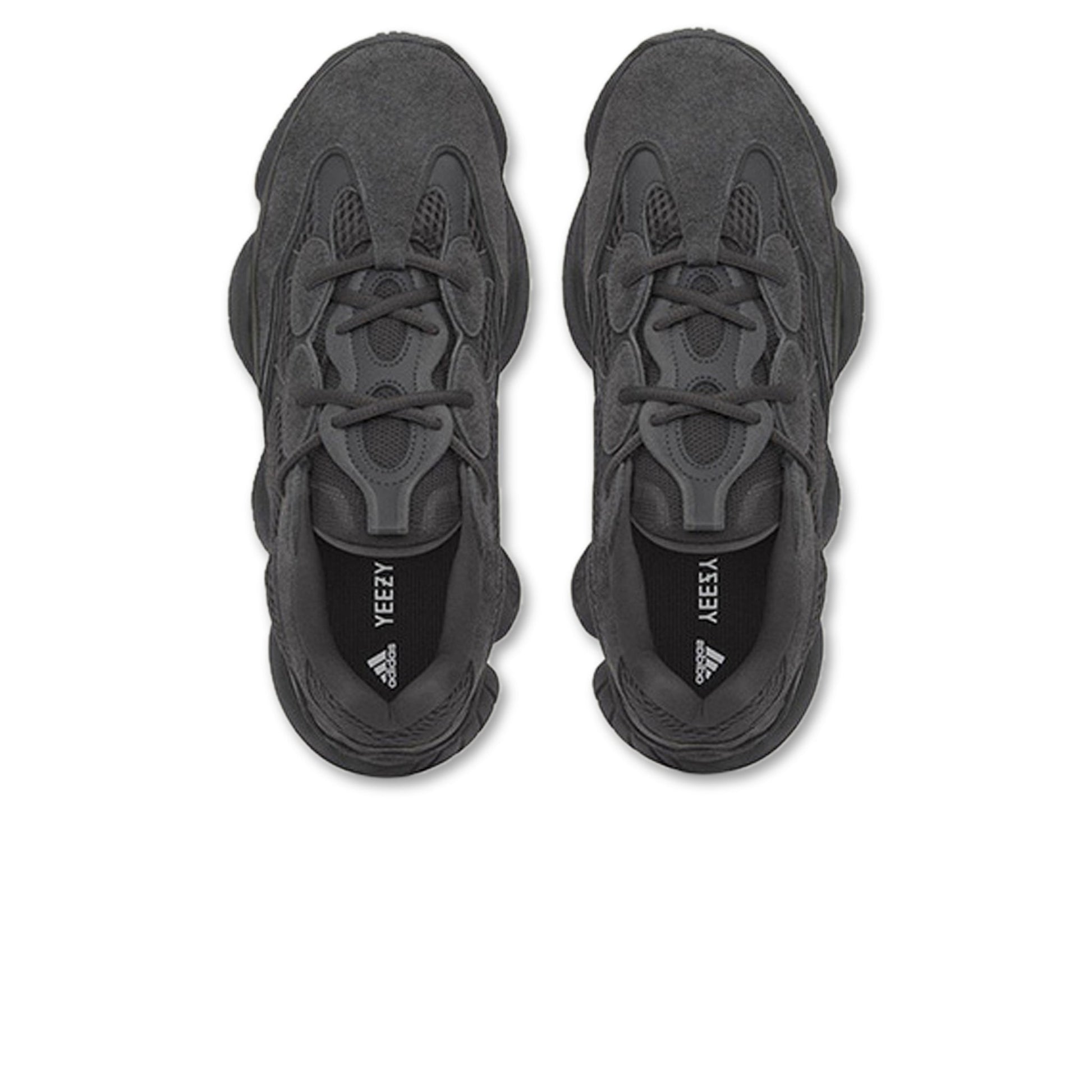 Arriving in a murdered-out colour scheme, the adidas Yeezy 500 grace a mish-mash of materials on its upper body. On its underlays, mesh construction spreads across the entire silhouette for the ultimate breathing experience we know and love from adidas' Boost models while supple suede overlays in a black colourway adorn its lateral and medial panels for a stealthy look.